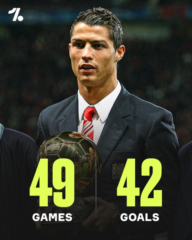 2008年12月2日,效力于曼联的C罗首次获得金球奖,他在2007-2008赛季出战49场比赛,打进42球,助攻9次,帮助曼联赢得英超冠军和欧冠冠军,最终在金球奖评选中排名首位,梅西、托雷斯分列二三位。