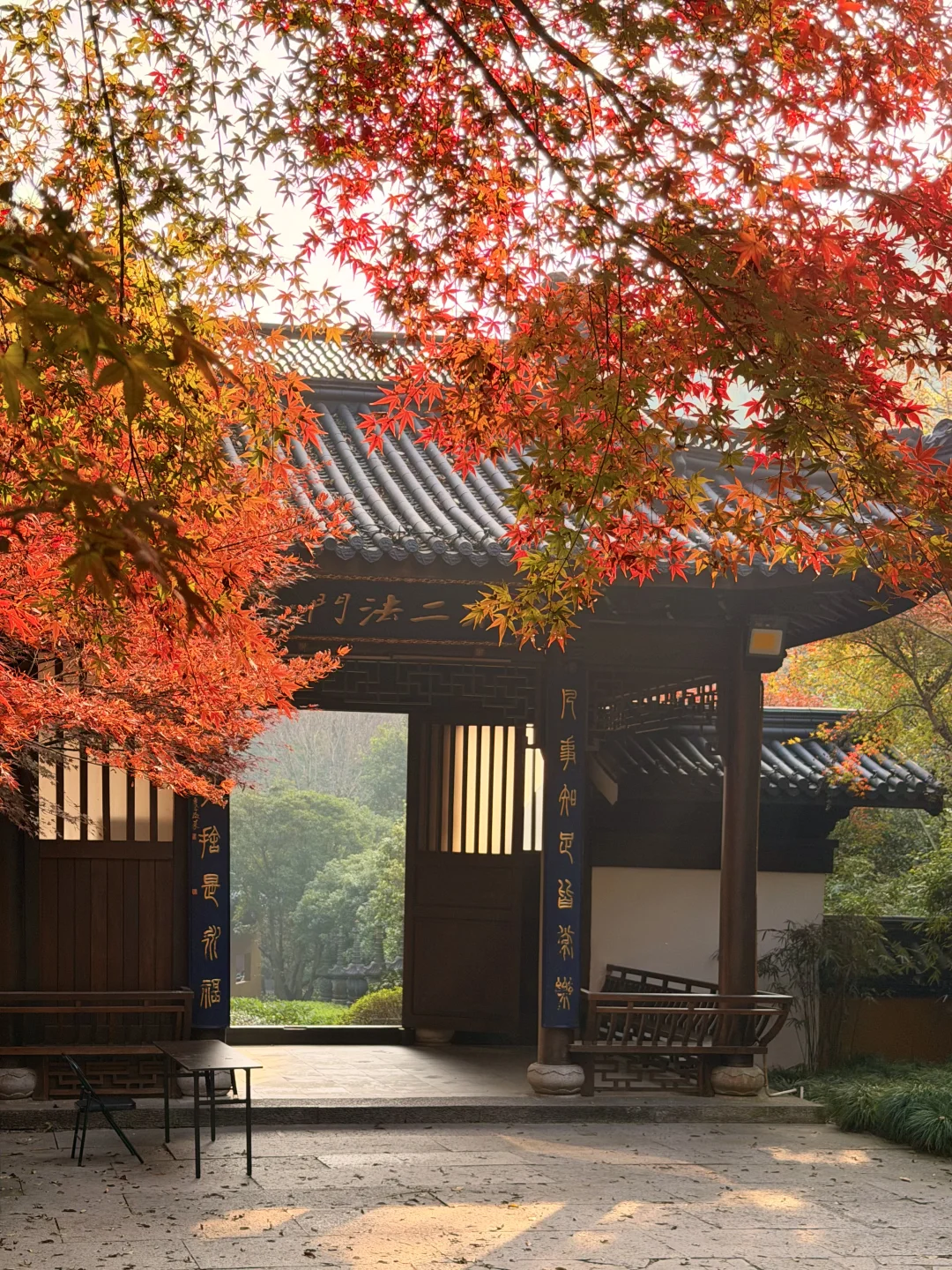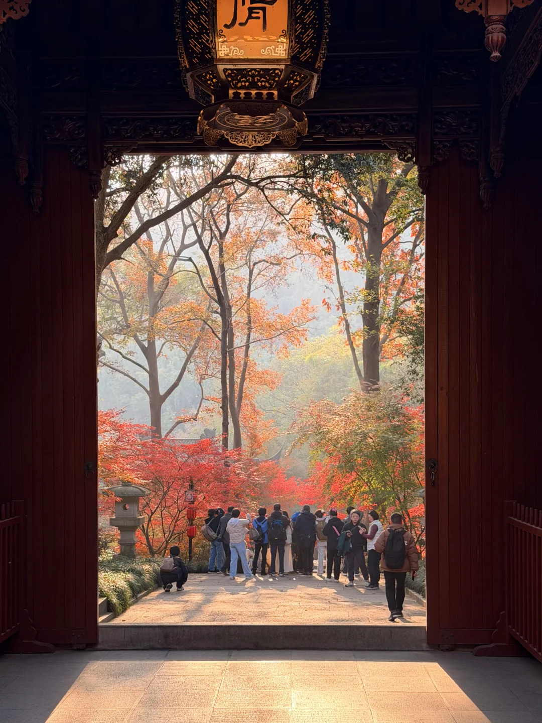 ☑️12.1起灵隐寺免门票,今天第一天人巨巨巨多,交通管制,建议从灵隐寺出来后,骑行赏枫!