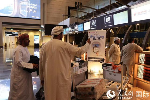 11月30日晚,在马斯喀特国际机场,准备前往北京的阿曼旅客正在办理值机手续。人民网记者张志文摄