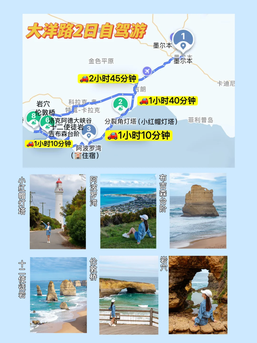 🔸D3-4:大洋路自驾:墨尔本市区→小红帽灯塔→大洋路纪念牌→阿波罗湾住宿→吉布森台阶→十二使徒岩→洛克阿德大峡谷→伦敦桥→岩穴→墨尔本