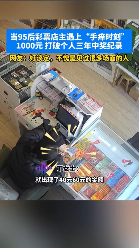 “这就是命啊!”11月24日,浙江丽水,一彩票站老板看电视时,突然有些手痒,就随手拿了一张彩票刮开,没想到一铲子下去,就能看到60、40的字样,全部刮开后,竟中了1000元!网友:这么淡定,看来是中过更大的。 买彩票中大奖,相信这是所有人的愿望,但是这样的情景似乎只会出现在梦里,毕竟这种概率小之又小,别说大奖了,就连中个几百上千的小奖,对于很多人来说都是可望不可即的。 丁女士经营着一家彩票店,平日里就悠闲地待在店里,有客人来就招呼一下,没有人来就刷刷视频。 这天中午,由于没什么客人,丁女士就默默看着电视剧,突然间,她仿佛感应到什么,于是就拿了一张彩票刮开,没想到竟中了1000元! 丁女士自然非常开心,一张面值20元的彩票,就中了1000元,净赚980元。虽然内心很开心,但是她并没有表现出过多的激动,一看就是见过大世面的人。 网友看后表示,这运气真是没谁了,听说很多彩票店老板,都会在客人刮完之后再去刮,中奖的概率还蛮大的,有人知道原因吗? 彩票是没有规律的,完全就是看运气,所以只要不亏本,那都是赚到了,大家买彩票时一定要理智。 信息来源:《当95后彩票店主遇上“手痒时刻”1000元,打破个人三年中奖纪录!网友:好淡定,不愧是见过很多场面的人》源新闻