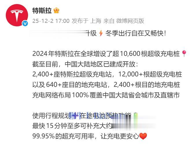 今日,特斯拉宣布其充电网络持续完善升级。