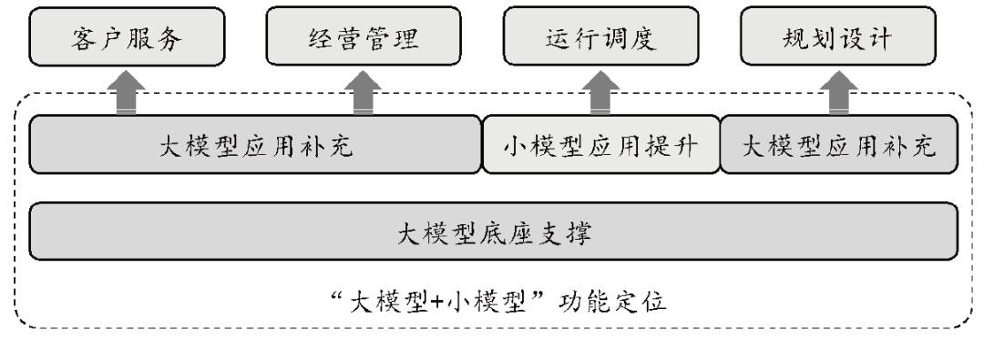 大模型深度融合的电力人工智能应用体系通过“大模型+小模型”的形式,差异化支撑客户服务、经营管理、运行调度、规划设计等电网业务。其中,小模型具有特定任务精度高、运行速度快的优势,深度应用于运行调度的部分场景中,大模型通过海量信息的理解、生成、推理,支撑提升小模型性能,同时拓展补充应用场景,发挥基础底座和新型场景应用两类功能。