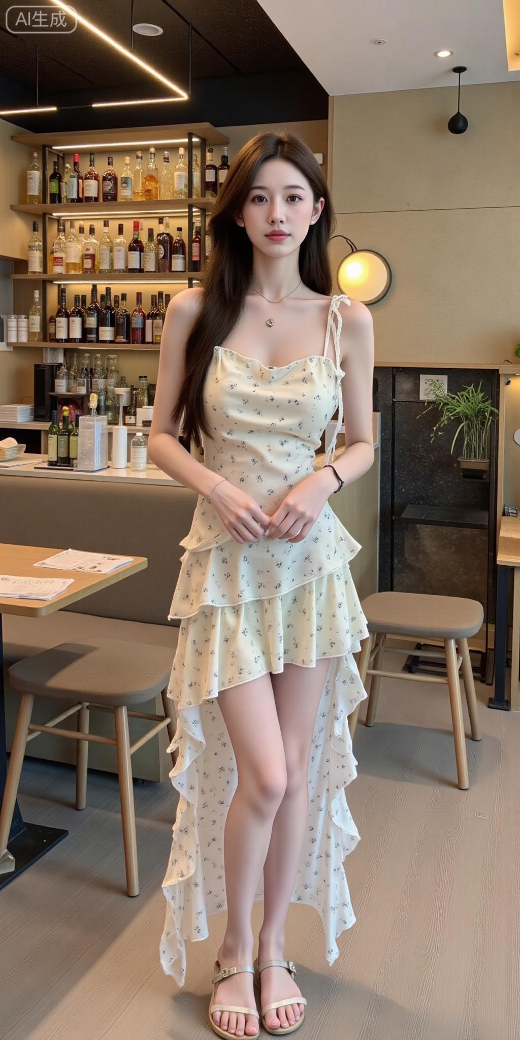 温柔甜美的少女,白色连衣裙,优雅动人。