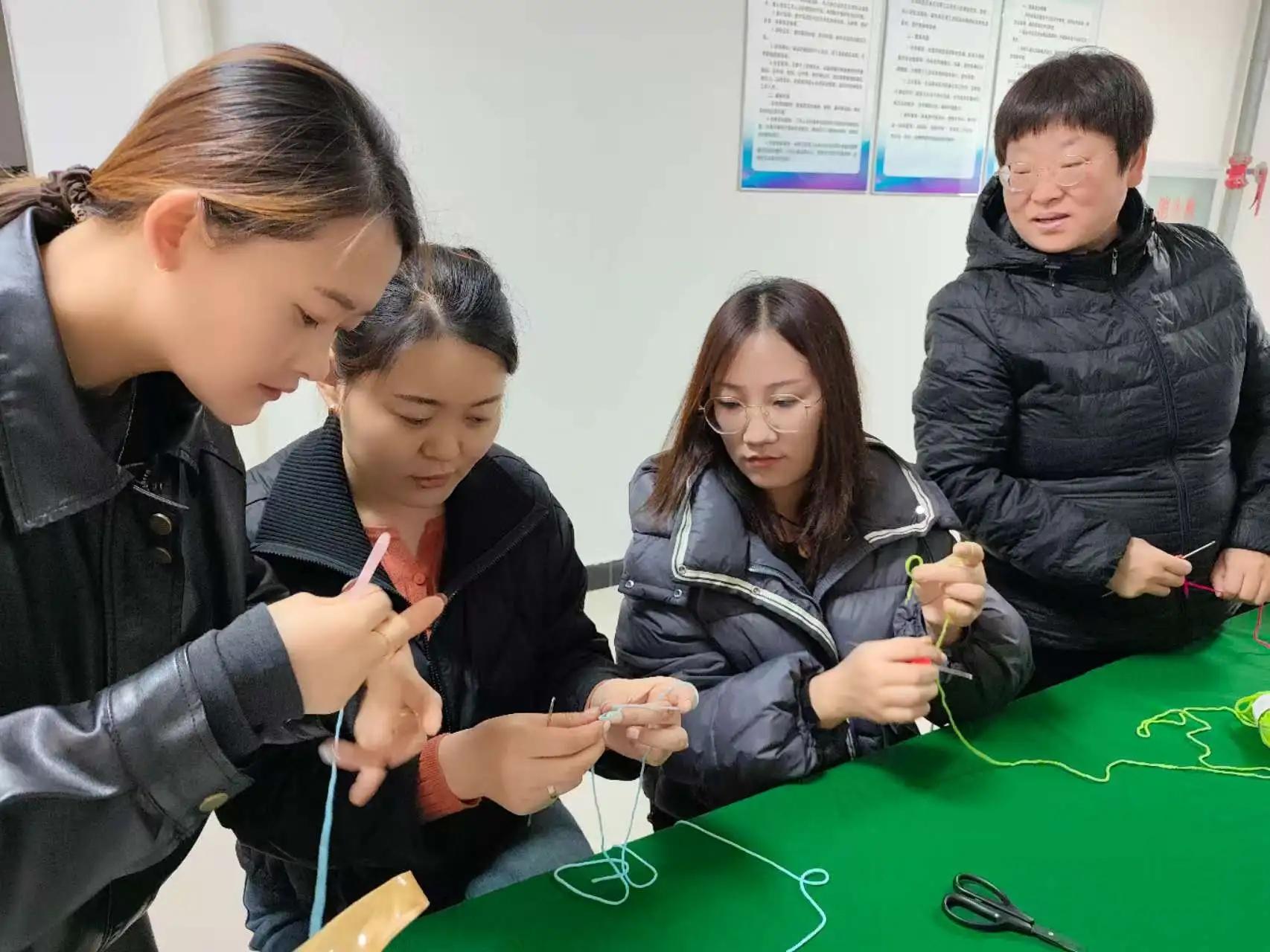 此次培训邀请了经验丰富的编织老师现场授课,内容涵盖基础针法教学(平针、元宝针、钩针等)、实用饰品制作(围巾、帽子、包包、家居摆件等)、创意设计技巧及成品销售渠道分享。课程采用“理论讲解+实操指导+互动交流”模式,确保每位学员都能快速掌握核心技能,独立完成作品。