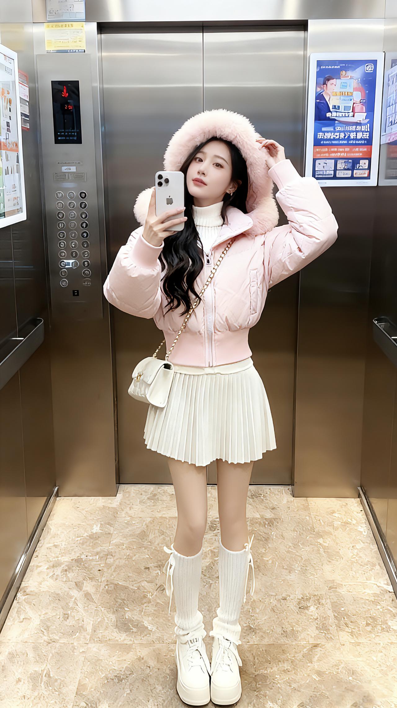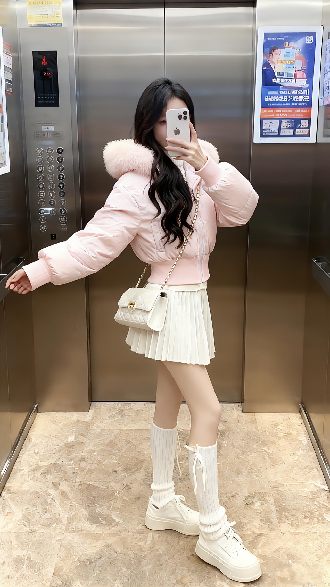 粉粉的,很喜欢!满眼星辰皆是你 电梯拍照 甜美穿搭 小个子穿搭