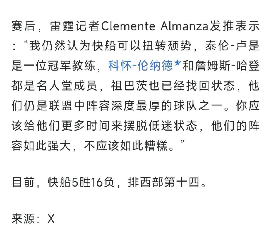 这位雷霆记者,我敢保证你在发这条信息的时候,一定是笑着发的,而且是发一个字笑十分钟的那种笑,是的你说的没错,泰伦卢是冠军教练,哈登和小卡也是名人堂球员,这些都是事实,还有一个事实就是快船明年的选秀权在你们手上[呲牙]