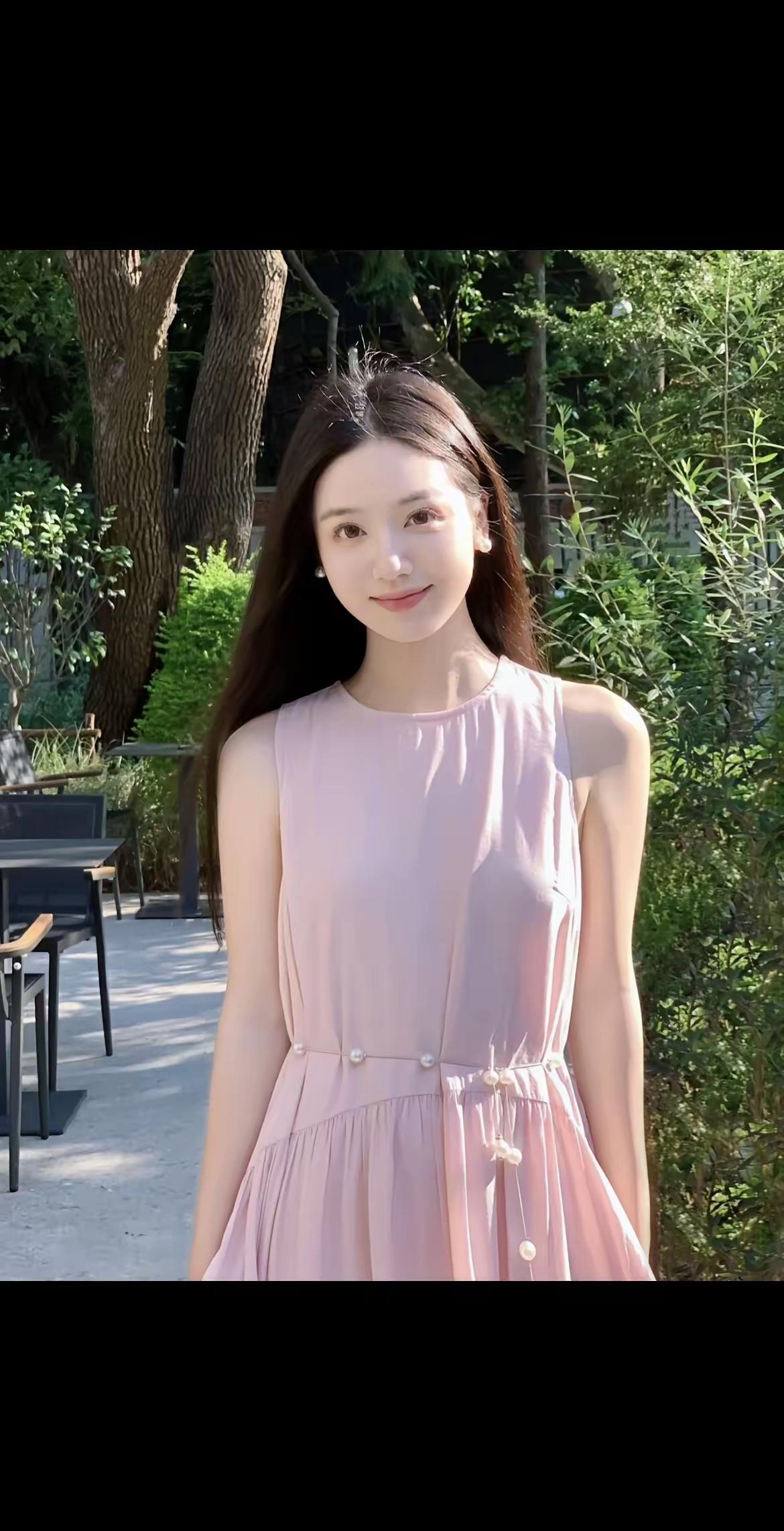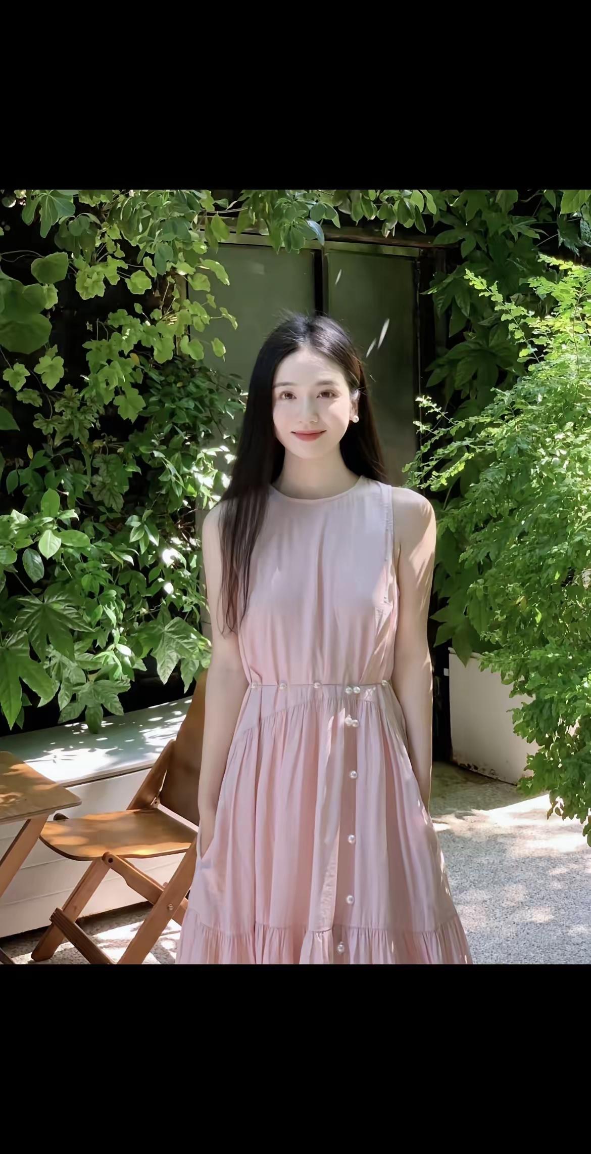 在阳光明媚的午后,享受宁静的时光,粉色的裙摆随风飘扬。