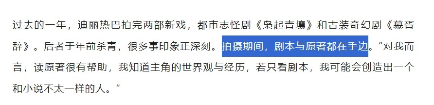 迪丽热巴拍水下戏有真实窒息感 迪丽热巴恐水但努力克服拍了水下戏,她说拍摄时感受到了真实的窒息感,接到《枭起青壤 》后就去看完了小说,为了呈现聂九罗的双面性真的做了很多研究和思考!迪丽热巴看了枭起青壤小说