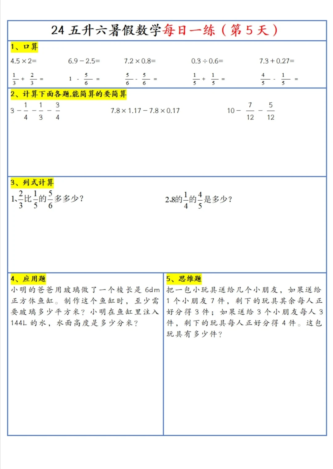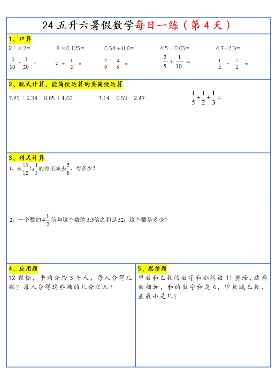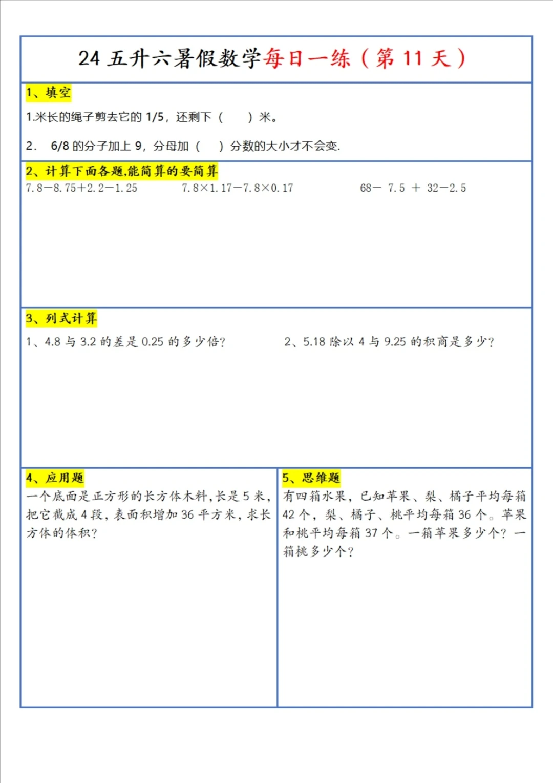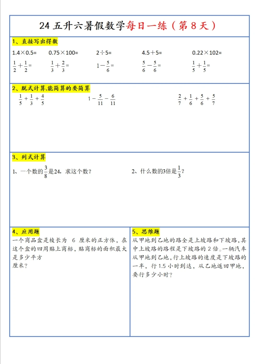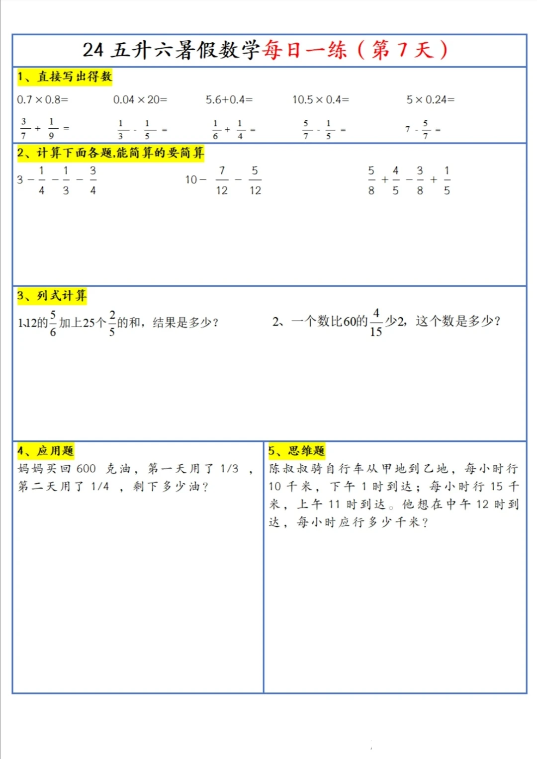 五升六 暑假 每日一练(上)