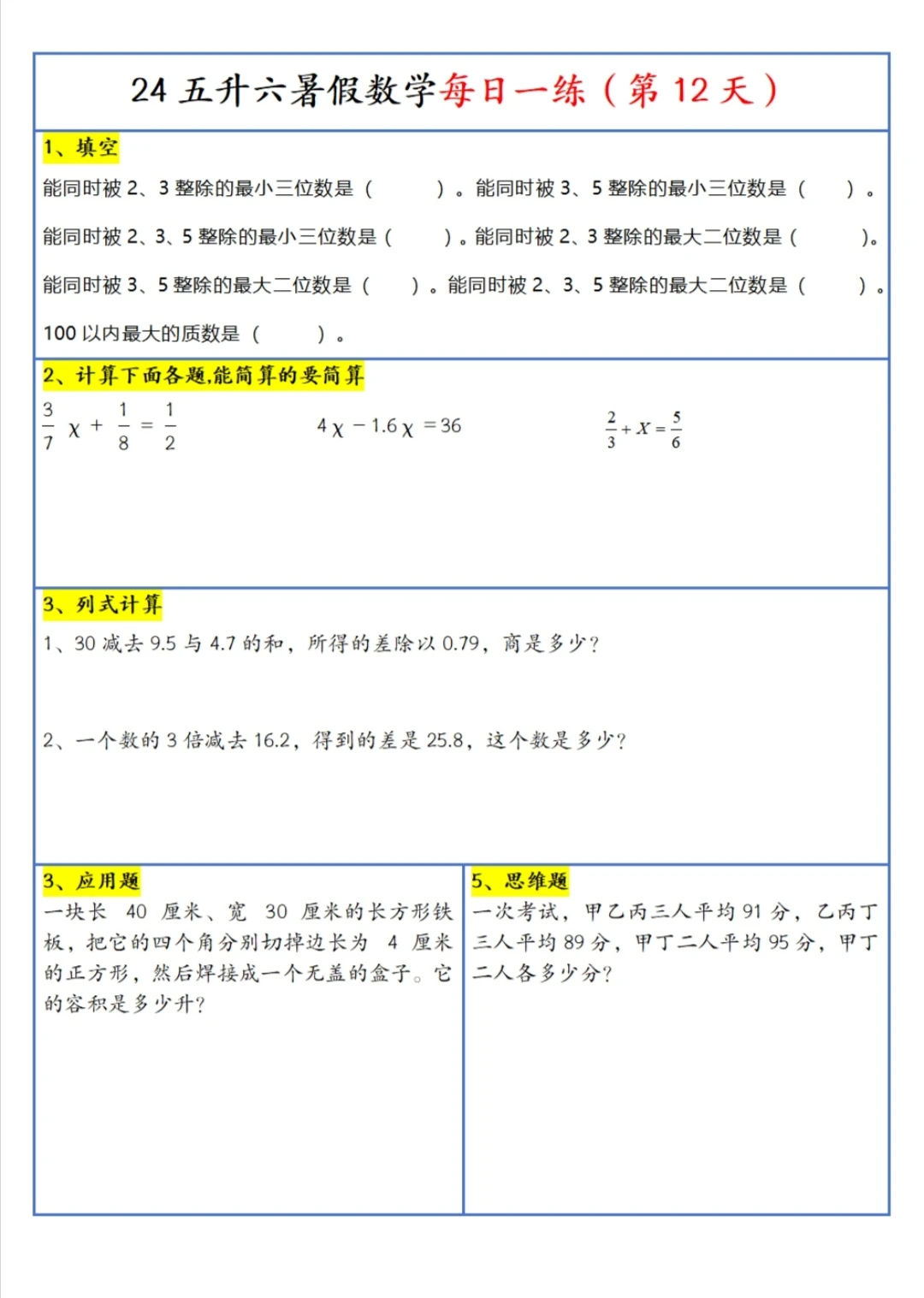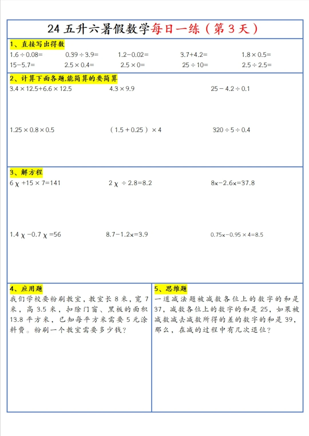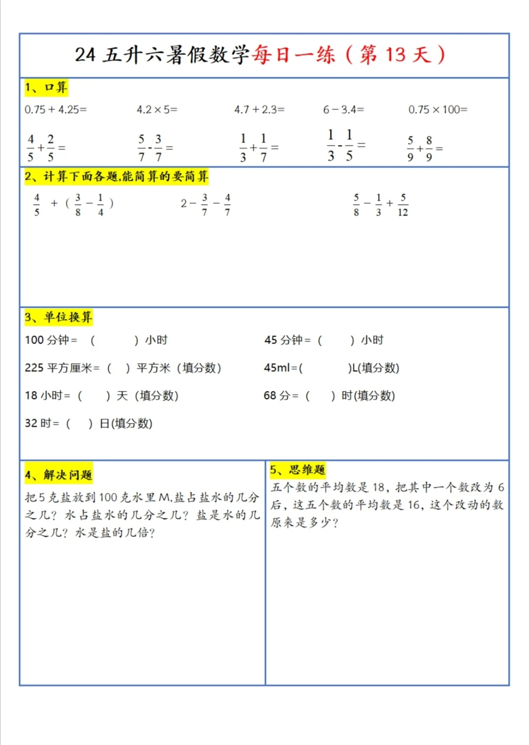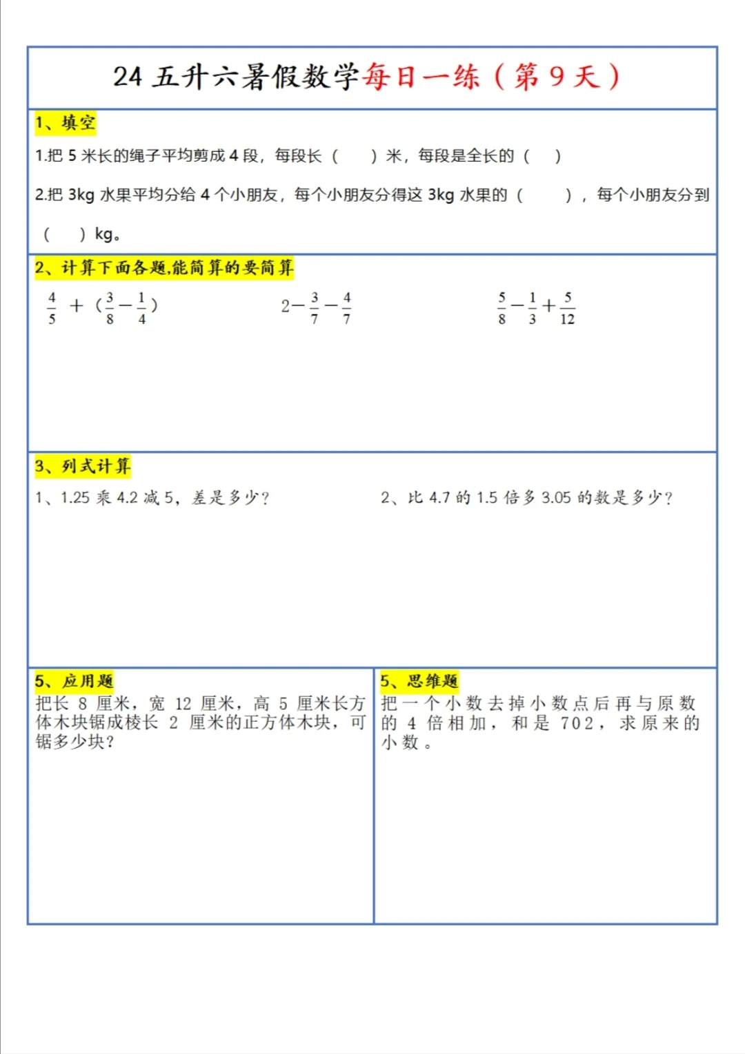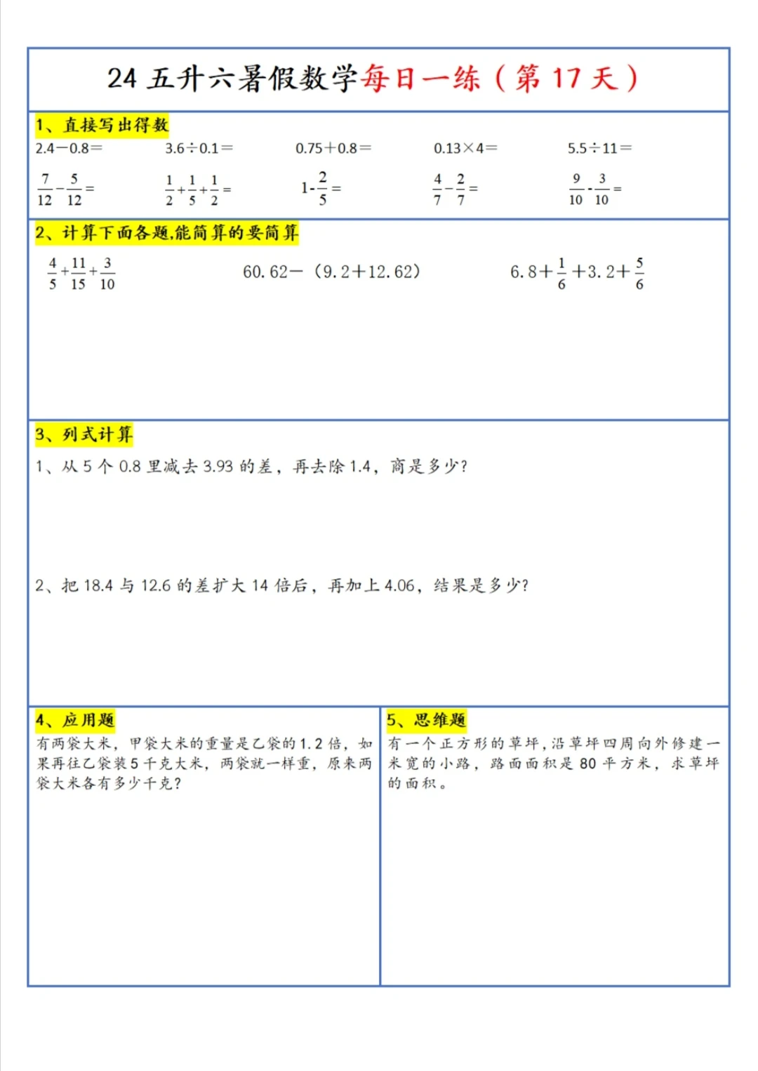 五升六 暑假 每日一练(上)