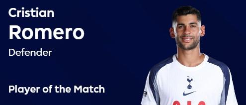 官方:罗梅罗当选热刺2-2纽卡球迷票选全场最佳球员