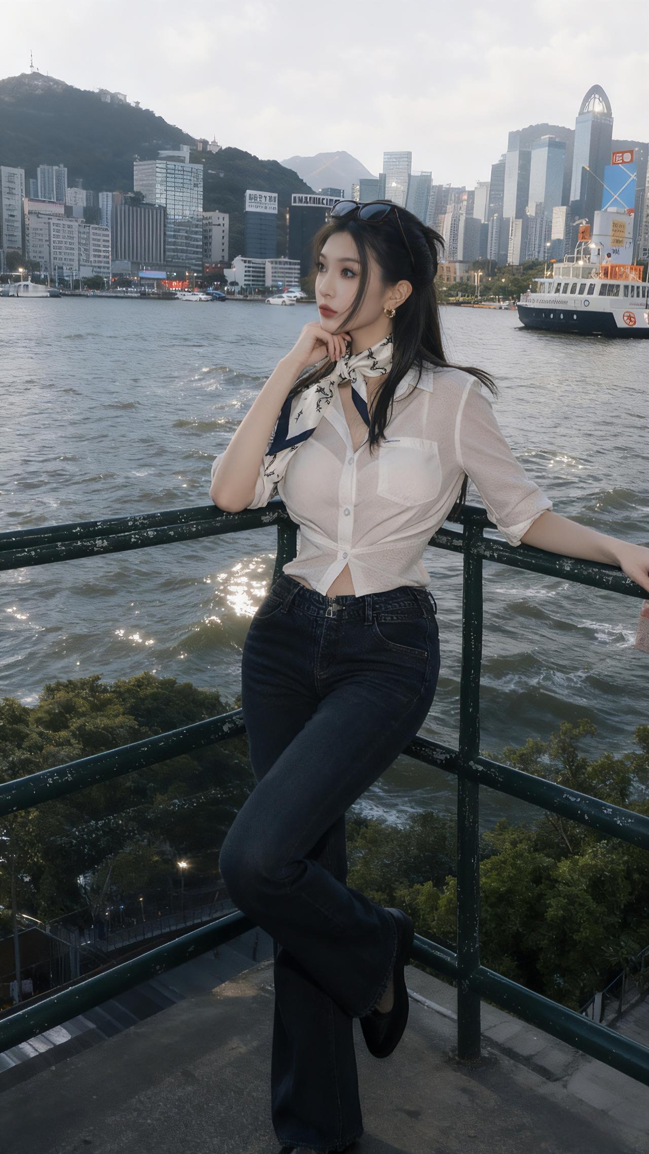 漫步海港,白衬衫+牛仔光彩出众!