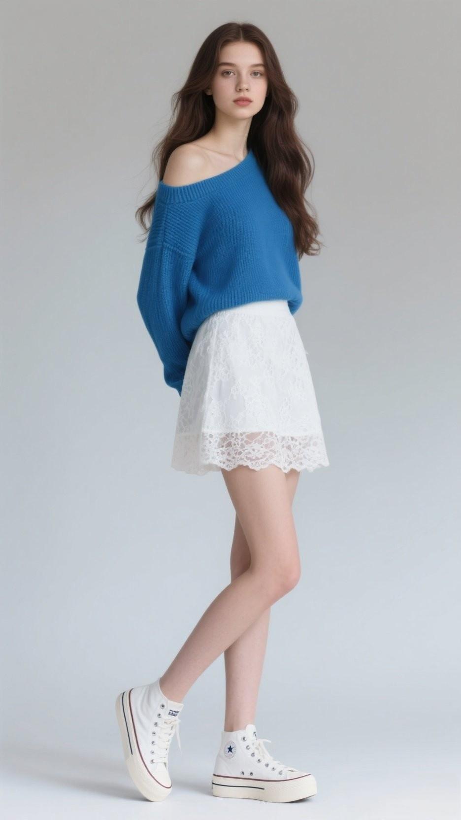 蓝色毛衣搭配白色蕾丝裙,这清新少女风谁能不爱!就像秋日里穿浅蓝毛衣配白色短裙和白丝的时尚女性,那柔和的蓝色毛衣,针织细腻,贴合身形,勾勒出曲线,还带着慵懒氛围。白色短裙裙摆褶皱,与蓝毛衣色彩明快对比,突出腿部线条又灵动。 要是夏天,“冰丝蓝”色也很绝,渐变色调清新宜人,营造出宁静优雅氛围。宽松冰丝蓝长款衬衫搭配九分冰丝蓝灰色裤子,露出脚踝,通勤穿休闲又有都市感。不管哪个季节,蓝色和白色搭配,都能让青春活力满满,少女感直接拉满!