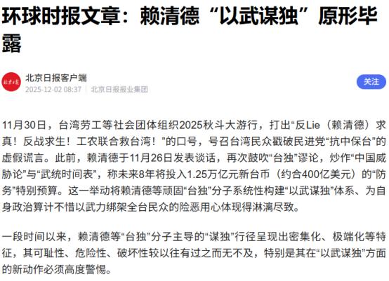 赖清德勾连高市早苗心虚了,台“国安”官员放话猜测,12月13日恐有“联合利剑-C