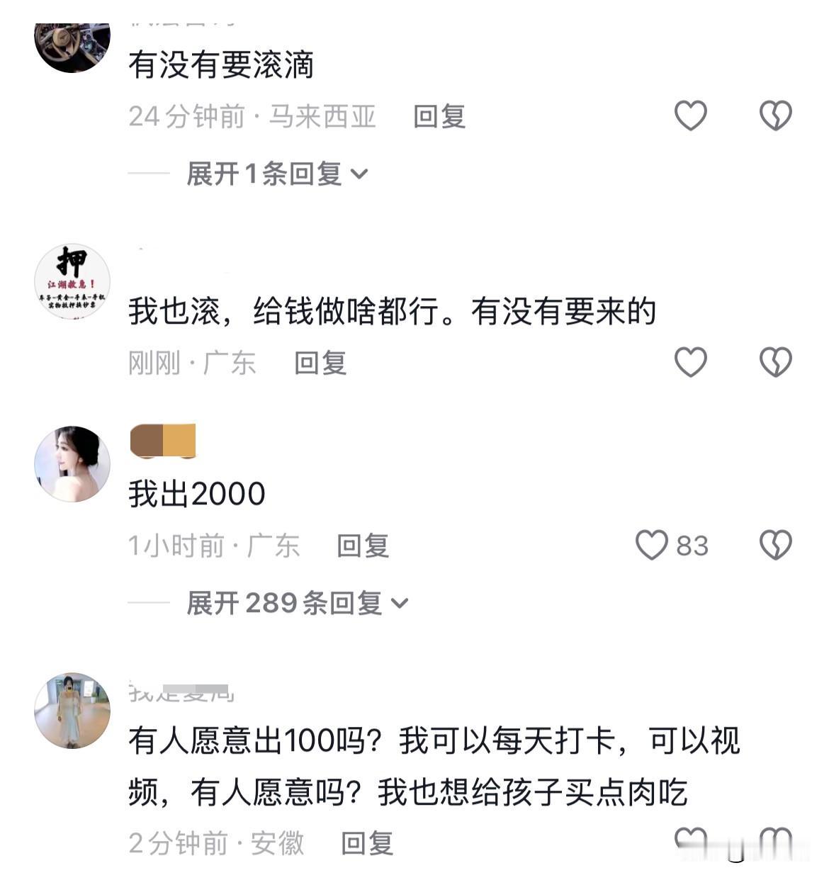 到底是钱重要还是面子重要?有位宝妈,被网友怂恿去“滚泥巴”,每次滚两分钟,给100块钱,连续10天。本来大家以为是开玩笑的,可没想到这位宝妈真的去了。她说:“100块钱,我能给孩子买点肉,够吃好几天!” 你看,这就是现实。100块钱,对很多人来说,只是一顿外卖,几杯奶茶。但对一些家庭来说,就是孩子能不能多吃口肉,能不能改善几天生活。 我觉得不是她愿意去,不是她觉得好玩,而是日子逼得人没办法了。一个当妈的,只要能让孩子吃得好一点,受点罪、丢点脸,都能忍。 她滚的不是泥巴,是生活的无奈。说实话,我真心希望大家别再拿这种“挑战”当玩笑了。 毕竟生活不易,生活已经够苦了,别再让这样的妈妈,用摔进泥里的样子,来换孩子的一顿肉。 大家觉得呢?(信息来源:法治进行时)