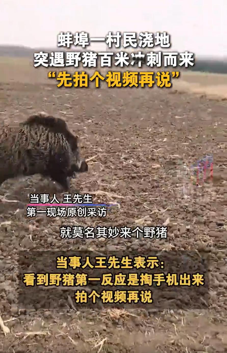 这心也太大了!安徽蚌埠,一男子在村里浇地,远远处突然有一个东西奔着自己跑过来,仔细一看竟然是一头野猪,可男子不但没跑,反而拿出手机拍视频。网友:这是真淡定啊! 王先生介绍,当时自己正在村里浇地,突然一头野猪就奔着自己冲过来,他当时第一反应就是先拍个视频。而视频中,野猪的体型并不小,跑过来时也是相当有气势,眼看就要撞到,王先生往后退了两步,随后野猪拐了个弯跑掉了 事后,王先生把视频发到网上,不少网友却为他捏了把汗 野猪这玩意儿,别看名字里带个猪字,真不是家里圈里那种傻乎乎的形象。通俗点说,它属于那种:你以为脾气好,其实脾气一点都不好;你以为跑不快,其实能甩你两条街;你以为它胖乎乎,其实那叫结实 简单说几点,就可以直观感受了解了 野猪的冲劲特别猛。真要发起脾气,往前一顶,成年人都扛不住。它那一头扎过去不是闹着玩的,成吨的破坏力,地里的一排玉米被它拱一下就没了 它胆子大又轴。你不惹它它可能不理你,但要是碰上繁殖期、带崽,或者它被吓到,它能把你当成树桩一样撞过去。它的脑回路不复杂,觉得你挡道了,就会硬闯 它还有牙。那对獠牙不是摆设,真蹭到一下,伤口不轻。农村里不少人都吃过亏,甚至连铁皮桶都能被它拱变形 所以说,这一回能平安无事,很大程度上是因为野猪本身没想和他较劲,只是路过。野生动物很多时候比人还谨慎,只要不被挑衅,它们往往懒得和人扯上关系,但要真是冲他而来,他那两步后退可能就不够用了