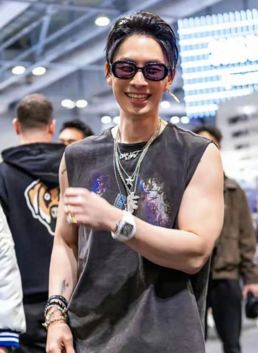 吴建豪被嘲暴瘦如麻杆后再发自拍照,这次他只穿了一件背心,露出了两只肌肉布满的胳膊