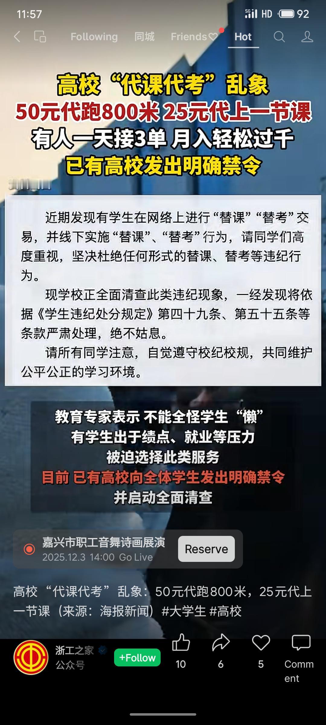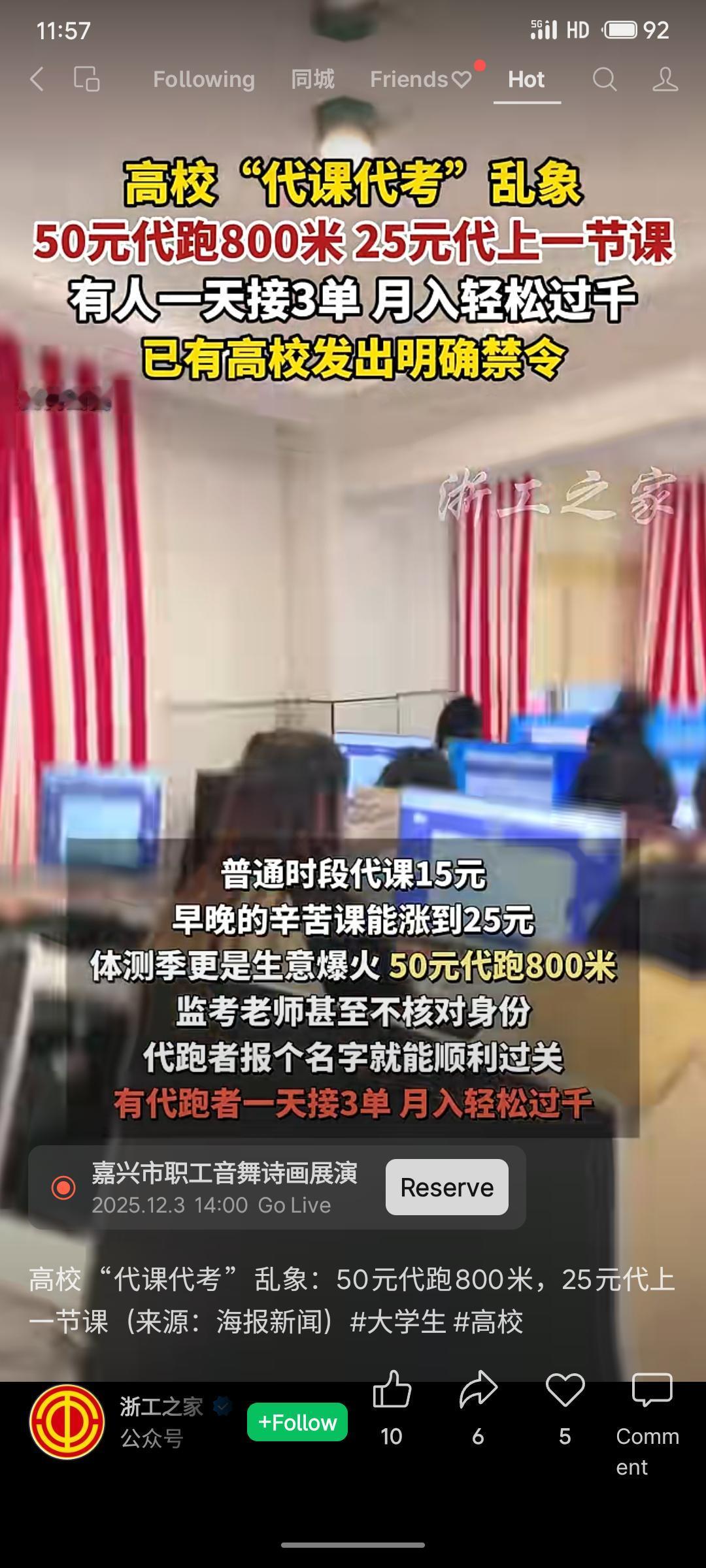 高校“代课代考”已形成灰色市场,明码标价(如50元代跑体测)。学生用暗语规避审核,从业者月收入可观。此乱象破坏教育公平,背后折射出部分学生面临的绩点与就业压力。目前,多所高校已明确禁止并启动清查,将依据校规严肃处理此类违纪行为。
