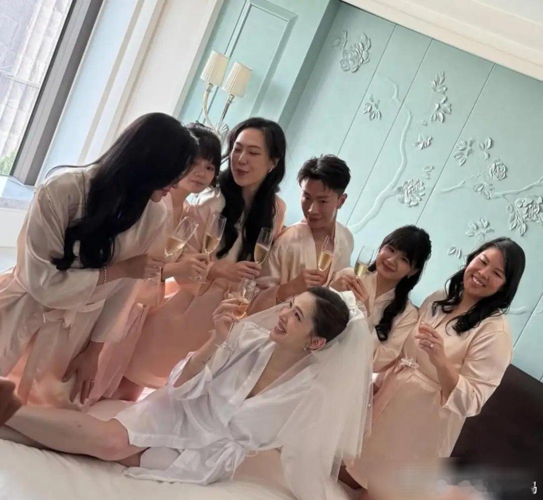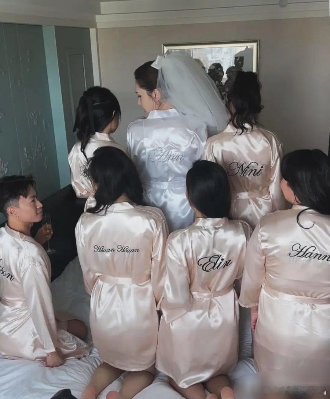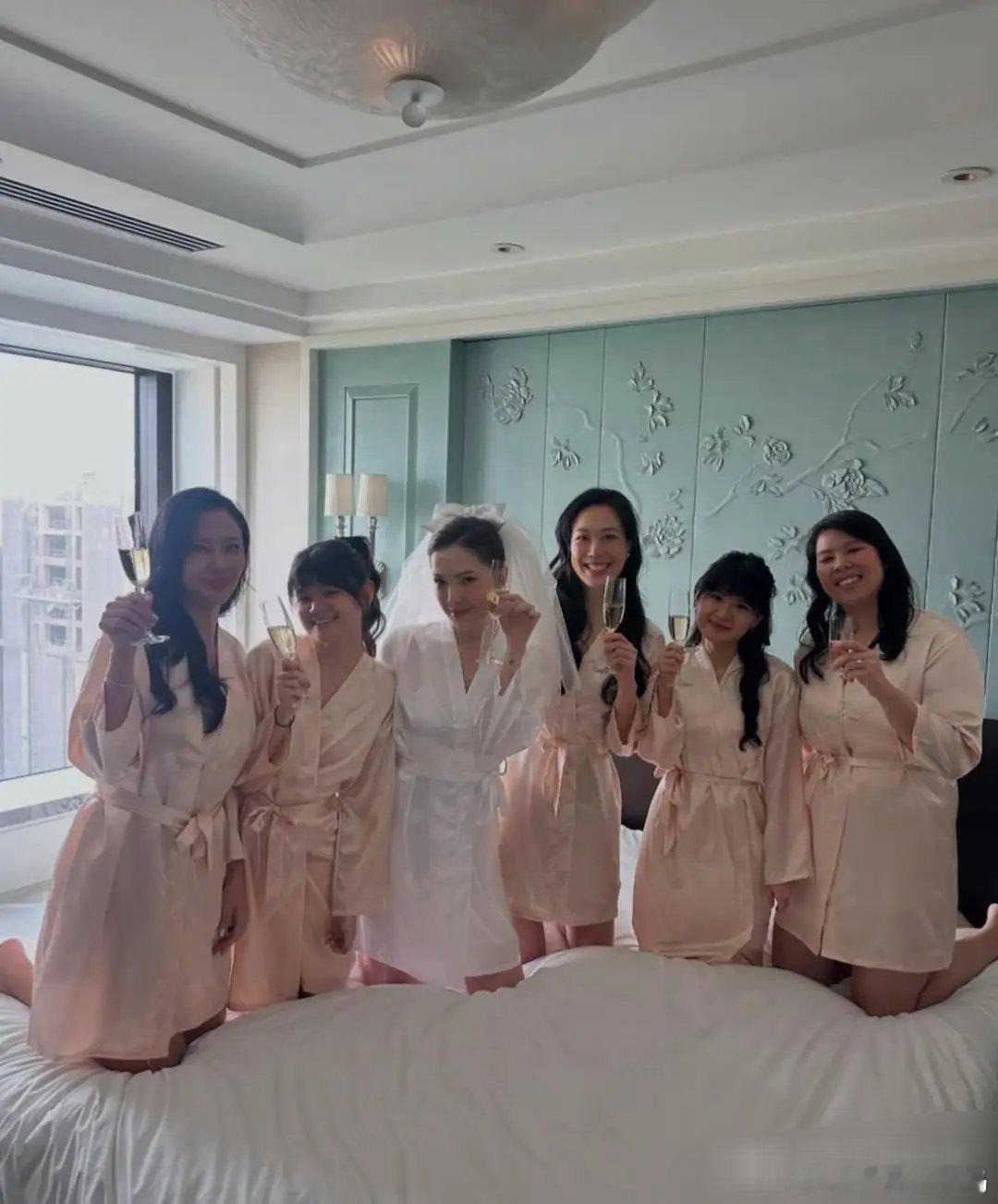 许玮甯婚前的睡衣趴上,她瘦瘦高高,肌肤白皙得像在发光,在人群中美得格外耀眼,气质出众。