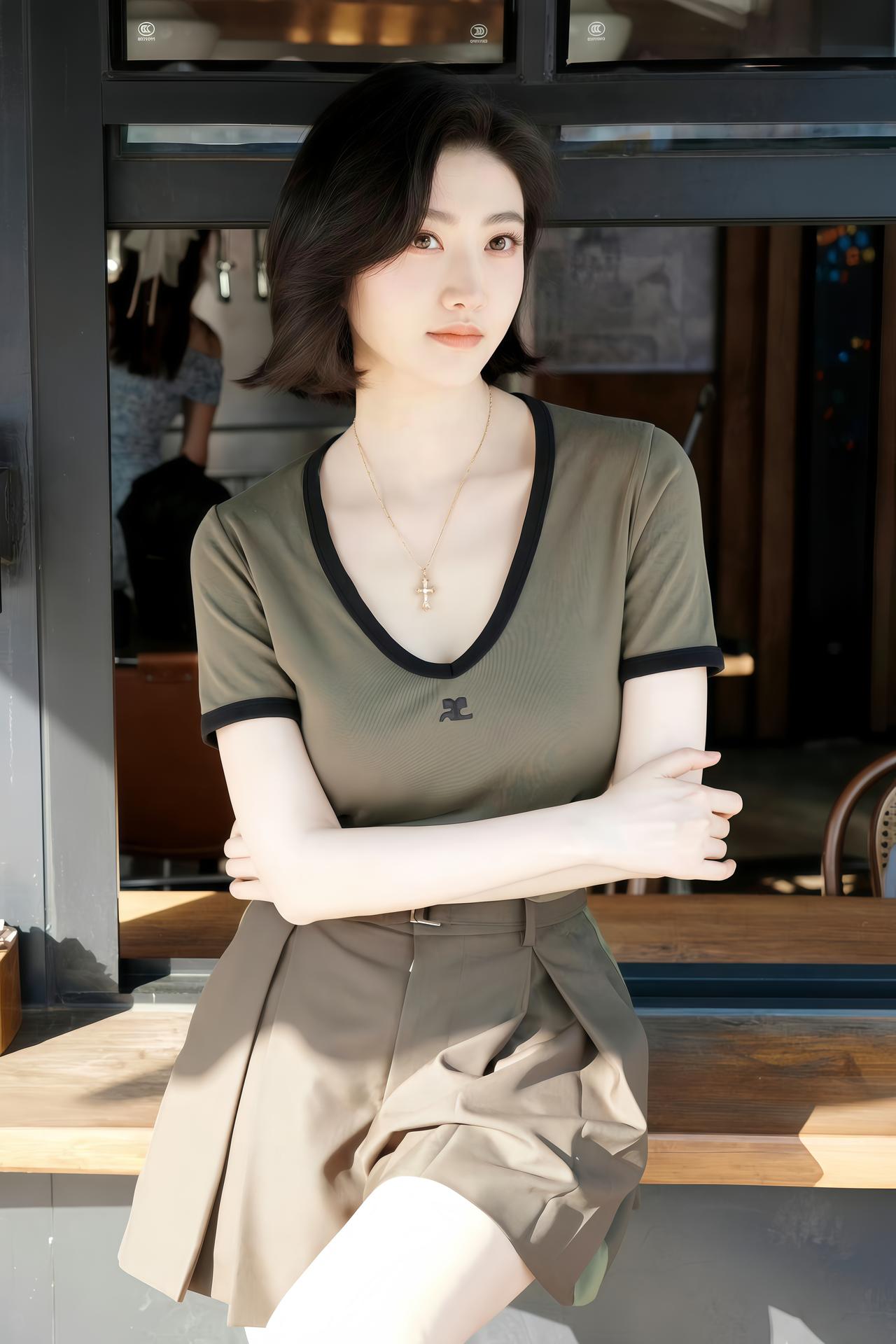 电梯里的优雅时刻,蓝白配色的清新穿搭