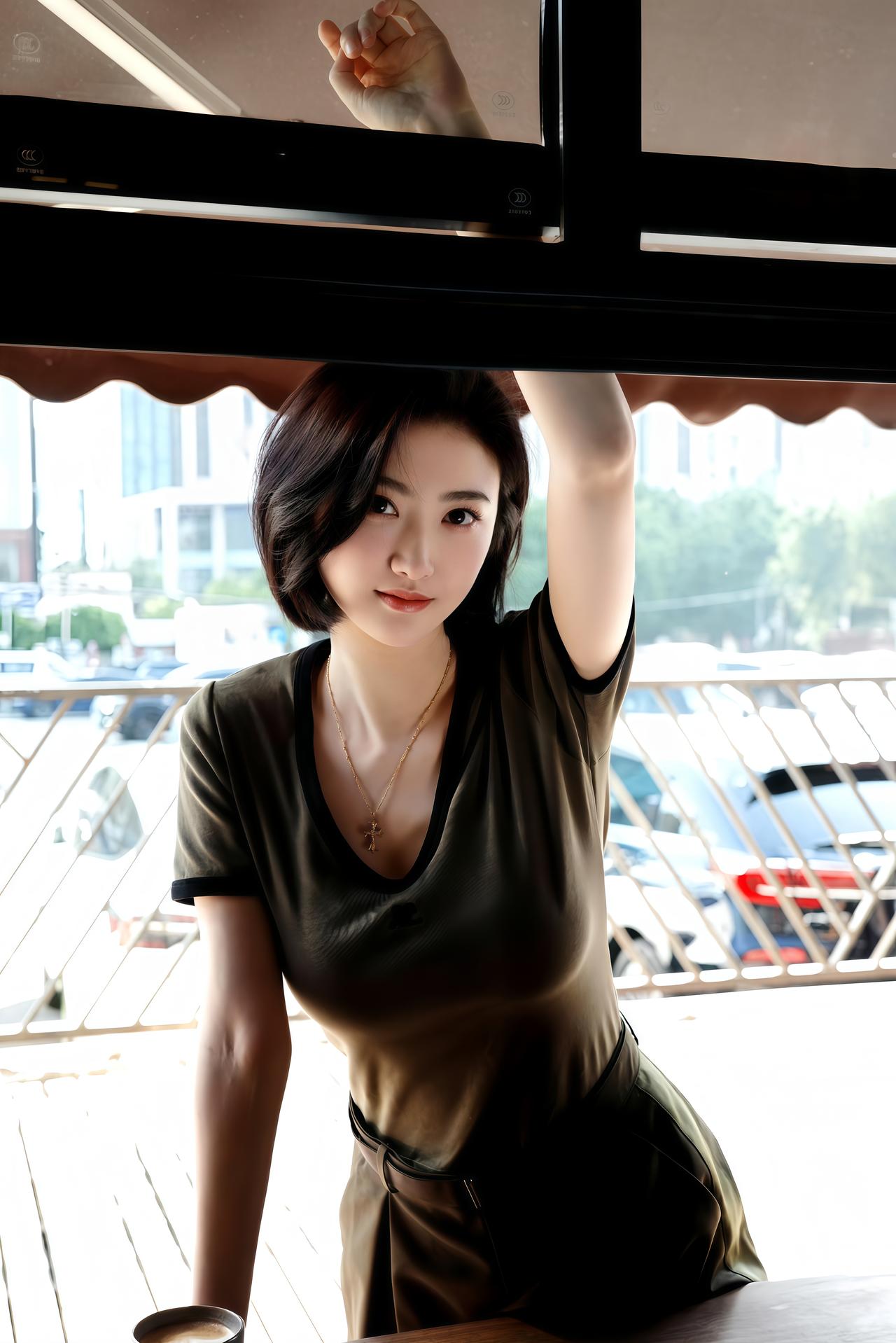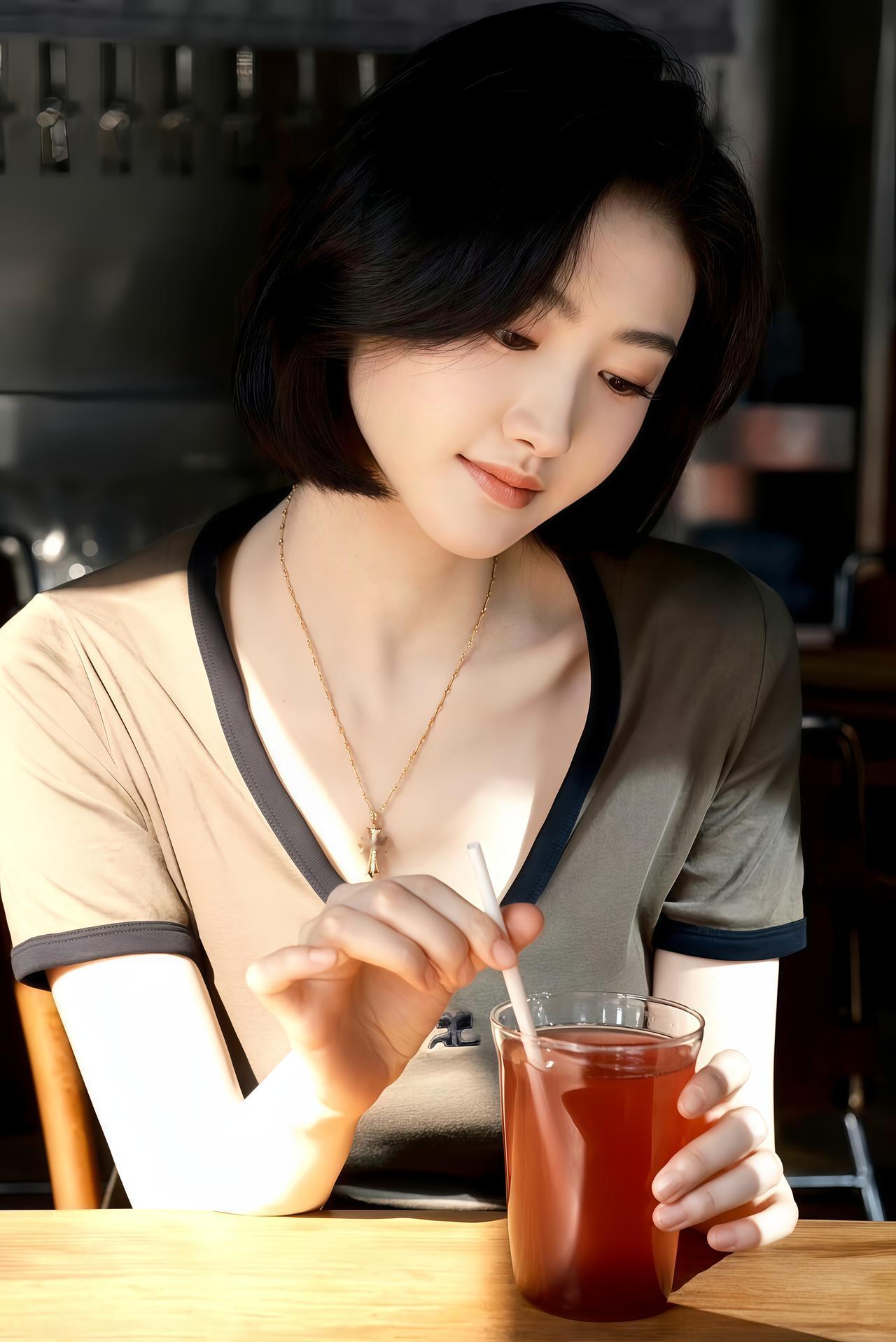 景甜茶叙写真封神!暖棕调穿搭+短发造型,把古典闲适感焊在身上!景甜 时尚穿搭 高雅气质美女 明星照片分享