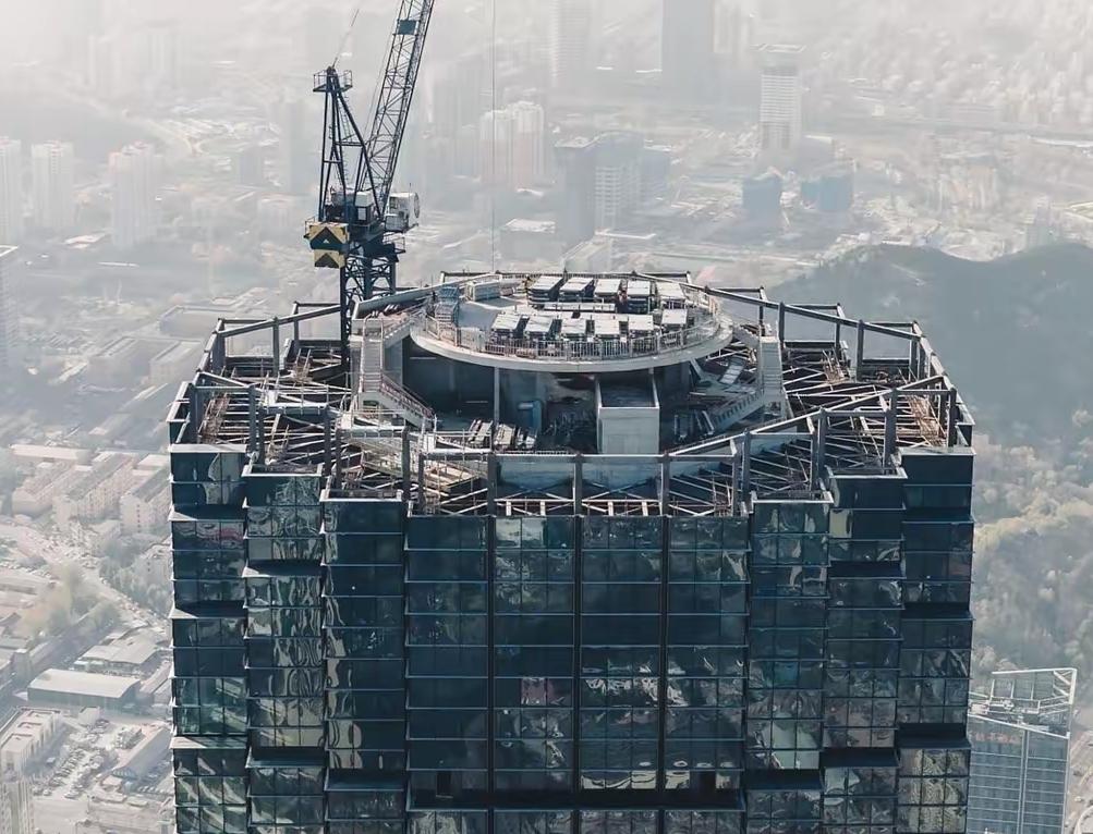 济南绿地要雄起了?山东第一高楼外幕墙还差最后一层。 事情是这样的,山东第一高楼、高度426米的绿地山东国金中心,原计划是2022年竣工,但直到现在,还没有全部完工。 绿地方面可谓把磨洋工发挥到极致。核心筒封顶了,结果还有个钢结构封顶;钢结构封顶了,还有个承重板封顶;接下来还有个玻璃幕墙封顶。玻璃幕墙施工的时候恨不能的一个月装一块,好不容易等到玻璃幕墙封顶了,嘿还有个塔冠结构;塔冠结构搭完了,还有个塔冠结构幕墙。 现在,绿地方面终于放话,2025年外表面全部完工。现在塔冠结构也剩下最后一层了。 拭目以待吧。现在经济不景气,能建成就不错了。