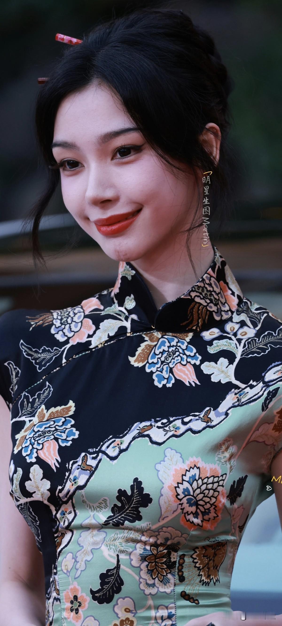 湖畔边,一袭粉色旗袍简直美炸了!那粉色花朵点缀其上,瞬间让旗袍有了灵魂,东方韵味