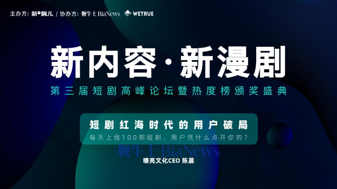 今天我们将发布嘹亮文化CEO陈晨的主题演讲和核心PPT:《短剧红海时代的用户破局》