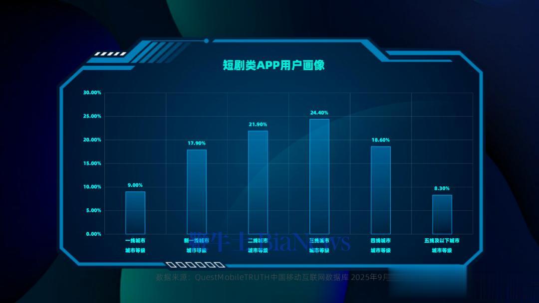 他表示,通过调研发现短剧用户男女占比接近,男性53.4%、女性46.7%,且24岁以下年轻用户与30岁以上用户均为核心群体,这也是漫剧受欢迎的关键,同时短剧受众已覆盖从一线到五线的全城市层级,不再局限于下沉市场。