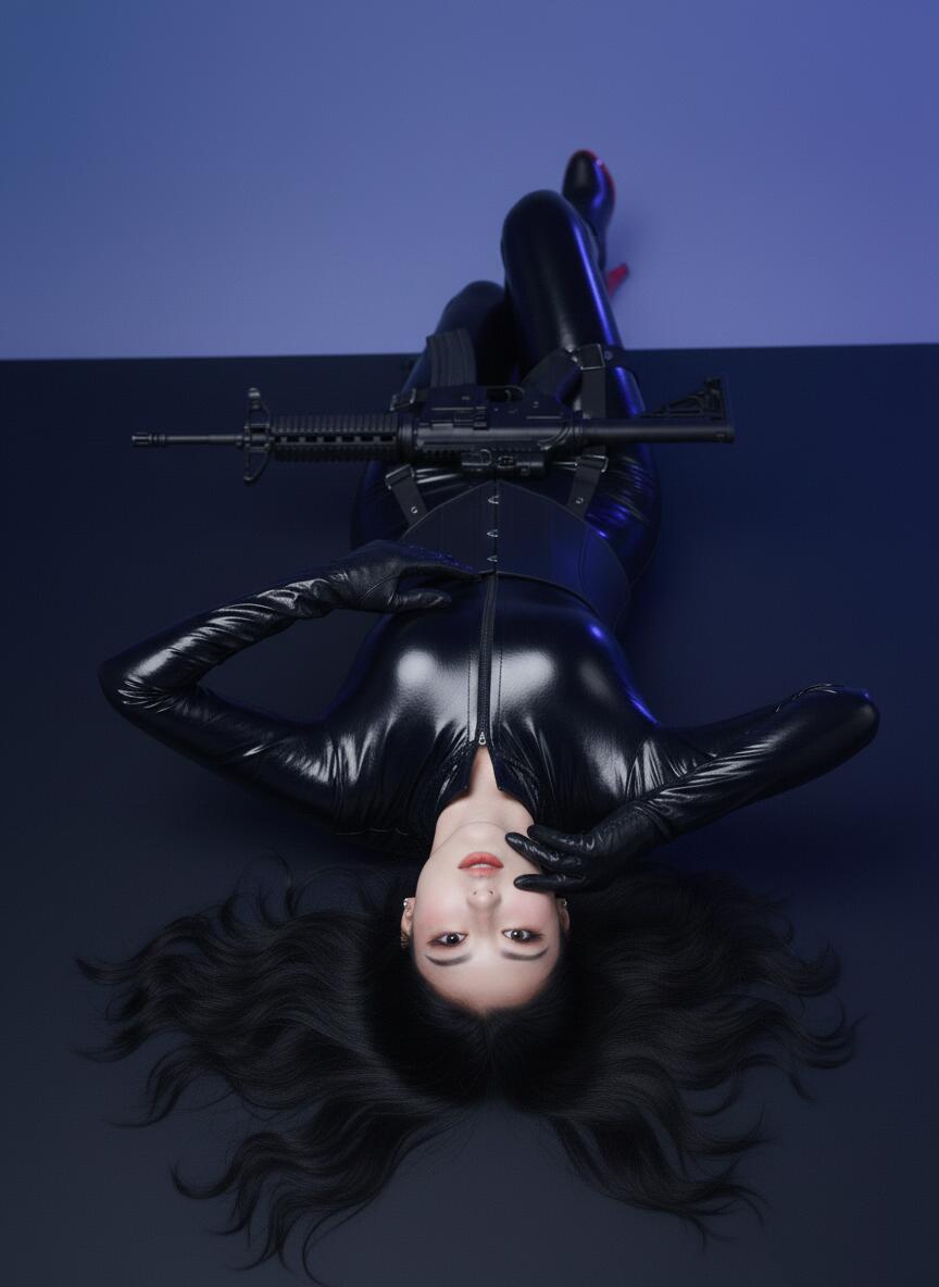 黑色皮衣+灰色紧身裤,搭配黑色高跟靴,帅气又性感!😎👠