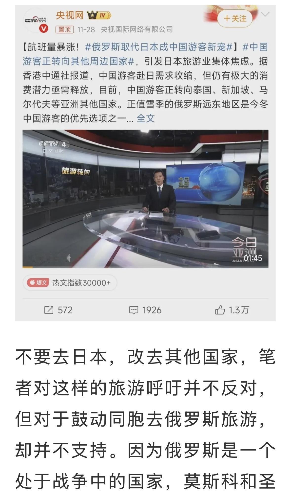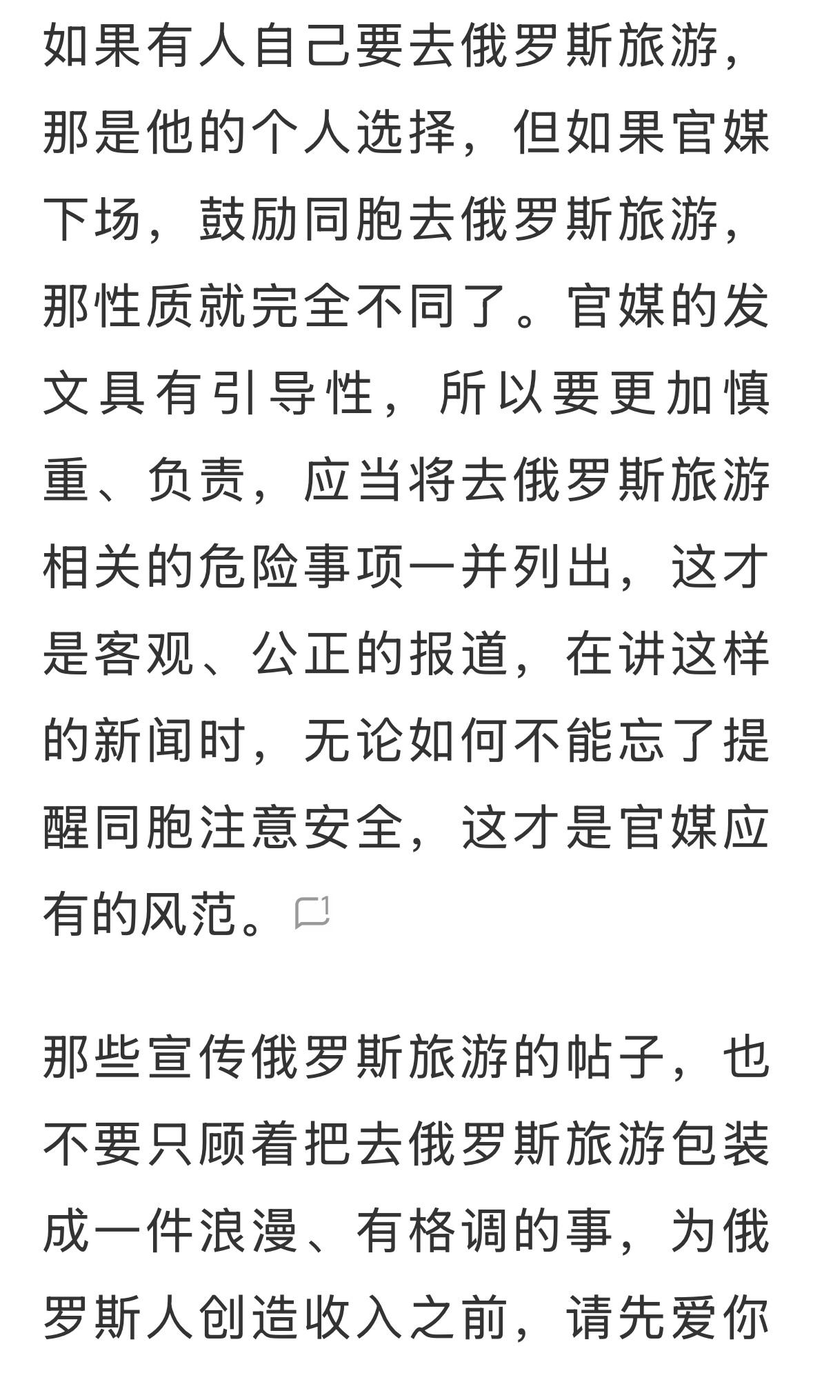 到俄罗斯将旅游有很强的政治含义,俄罗斯是对中国最友好的国家,是铁哥们中的铁大哥。不去日本,去俄罗斯呗,避开战场,注意听警报。看着不安全,赶快回国,如果愿意,也可以当志愿兵上前线,