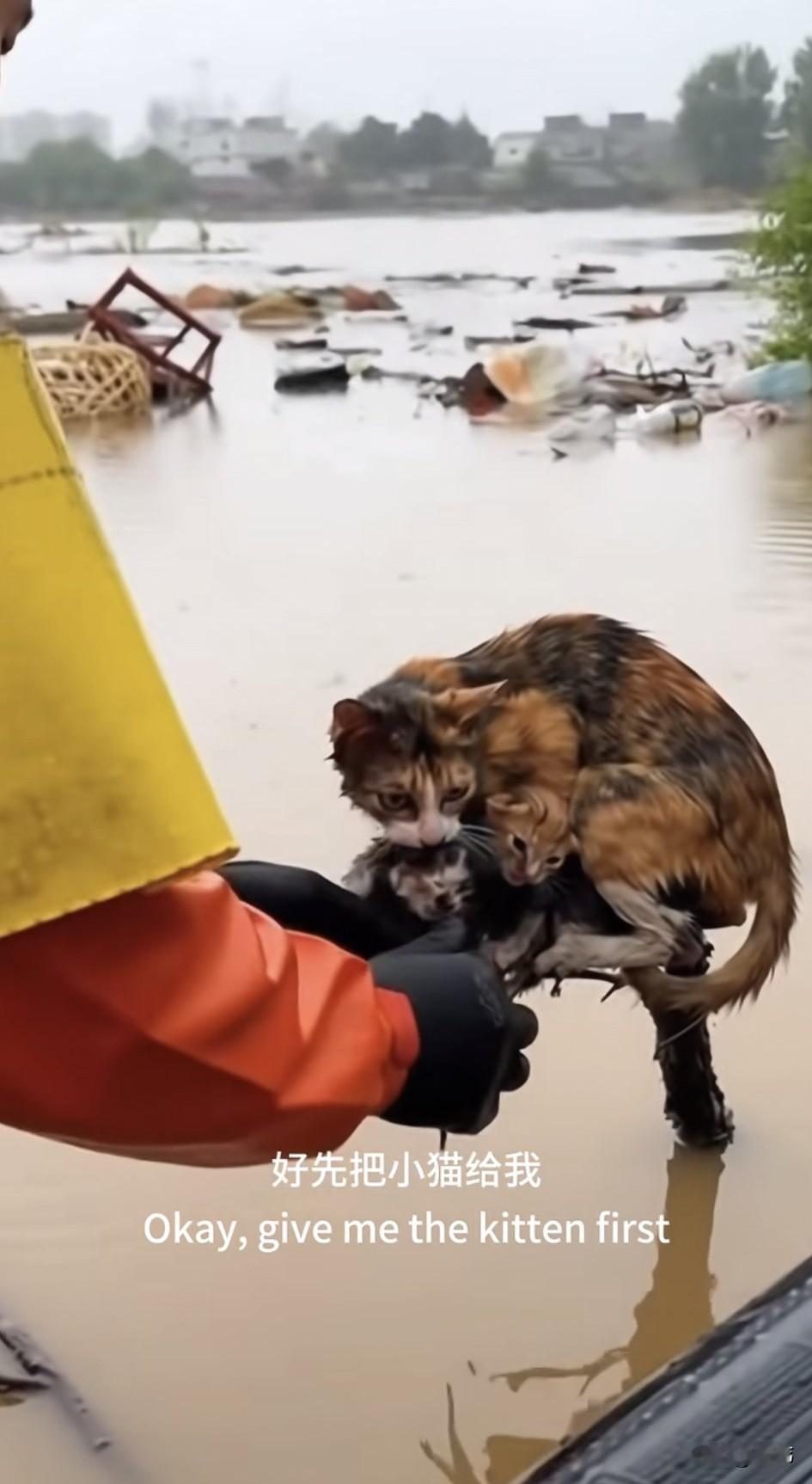 洪水无情,人间有爱!这天一只流浪猫妈妈居住的村庄遭遇了特大洪水,很多房屋都被淹没