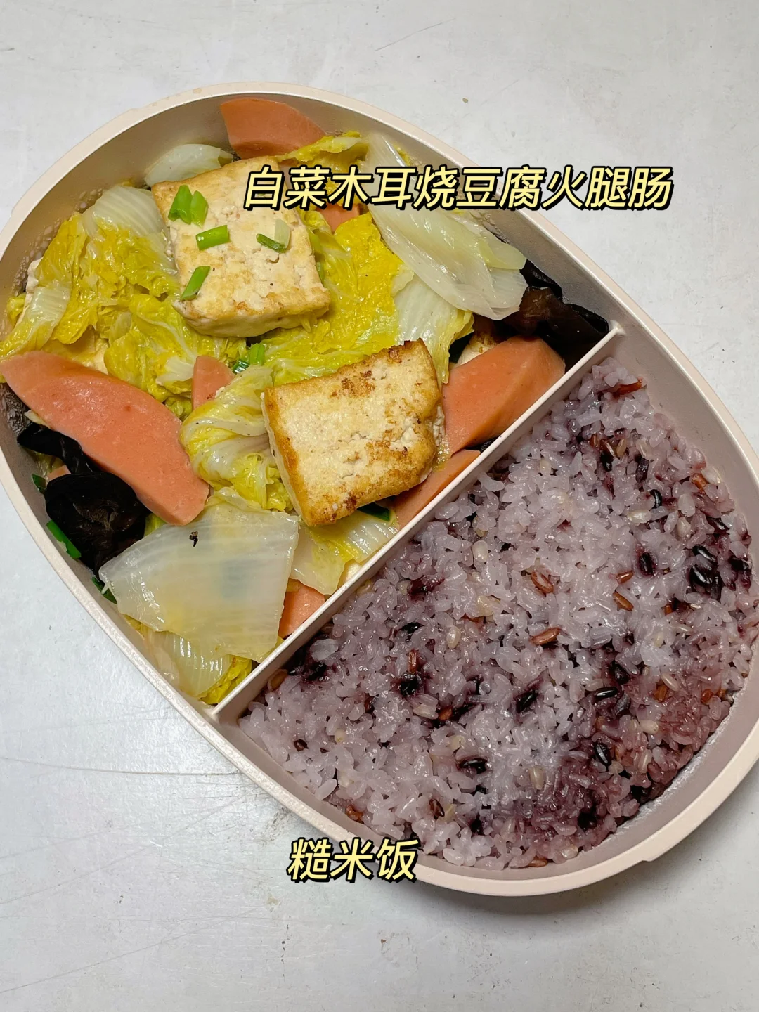 📍糙米饭+白菜木耳烧豆腐火腿肠