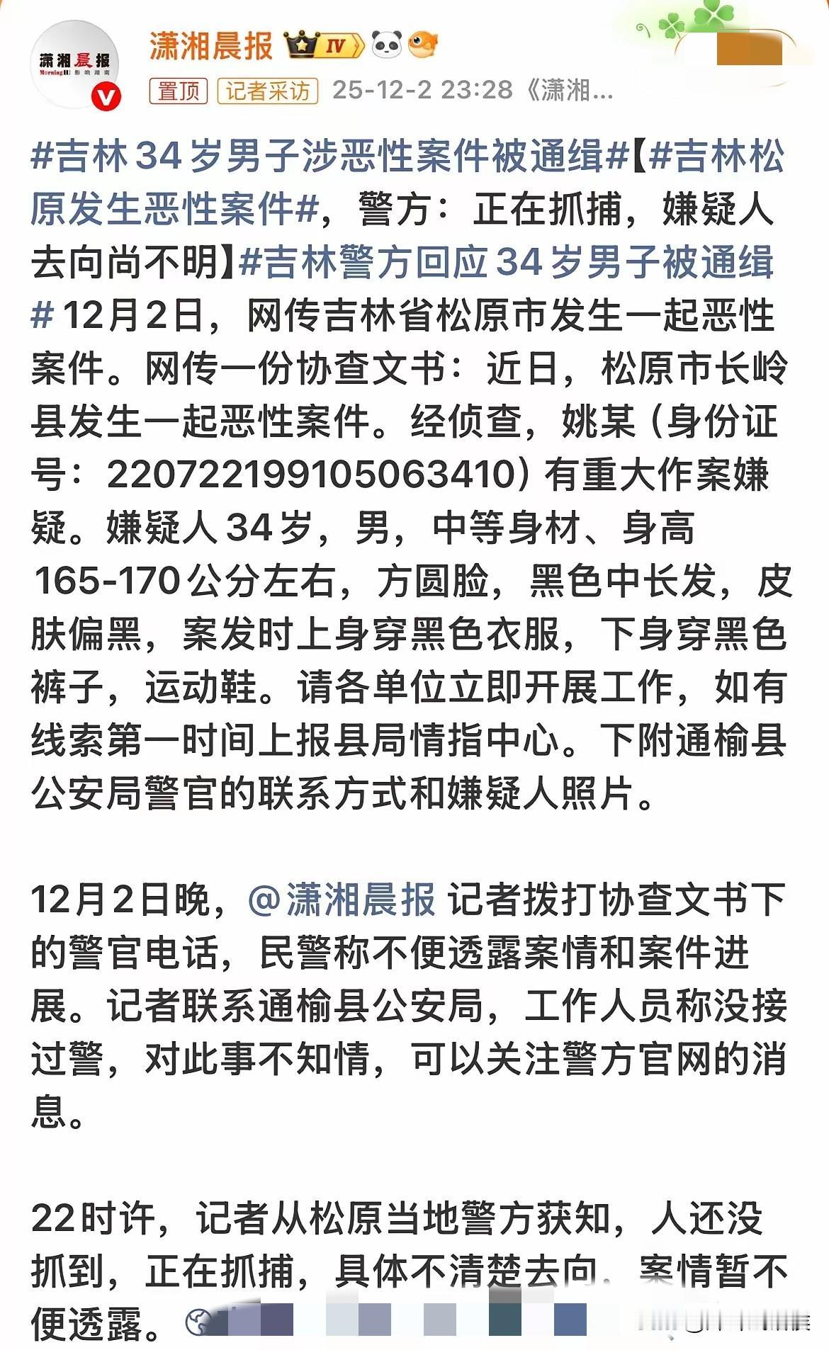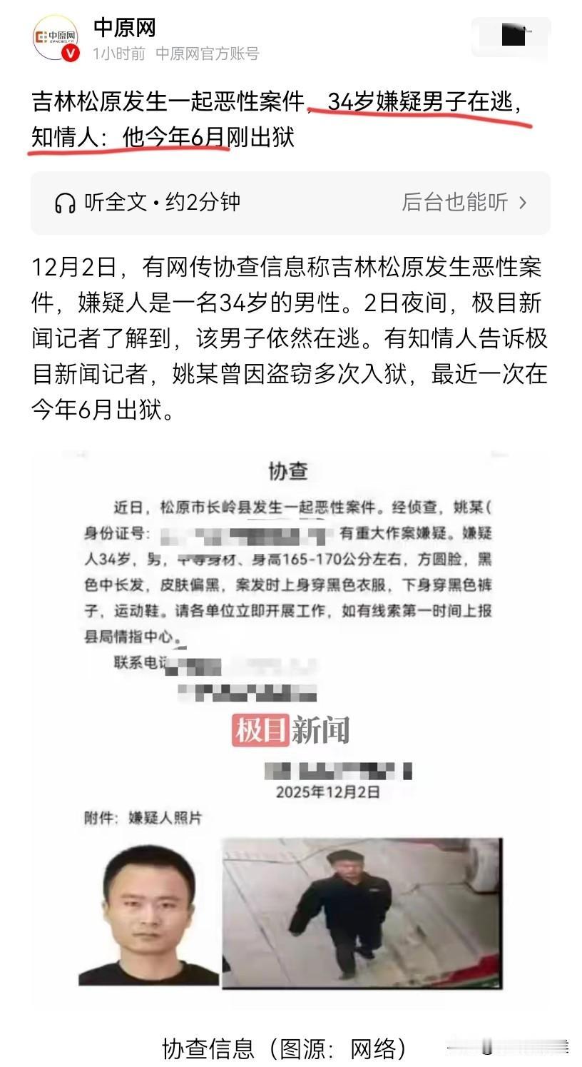 这辈子算是毁了!吉林34岁男子犯下恶性案件,警方发协查公告,公告信息很少,但知情