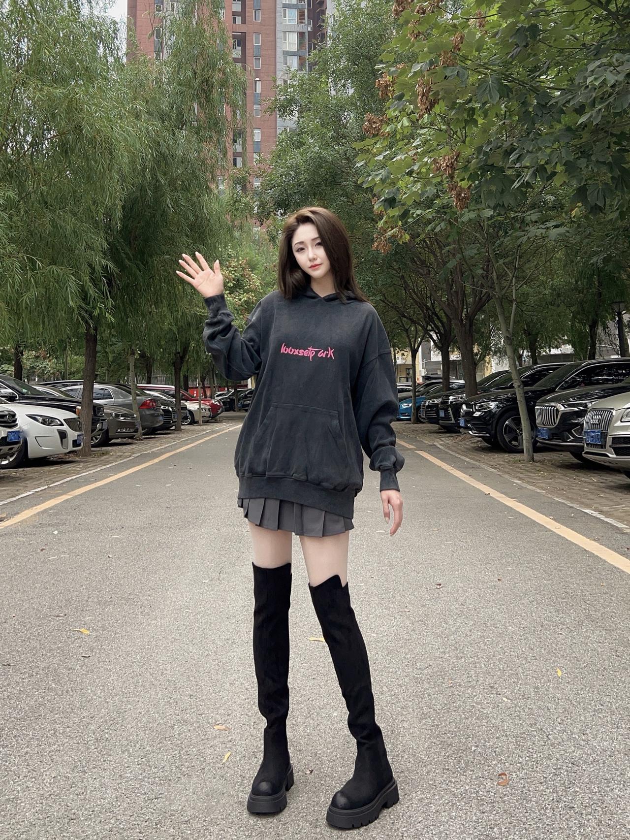 电梯里的优雅时刻,蓝白配色的清新穿搭