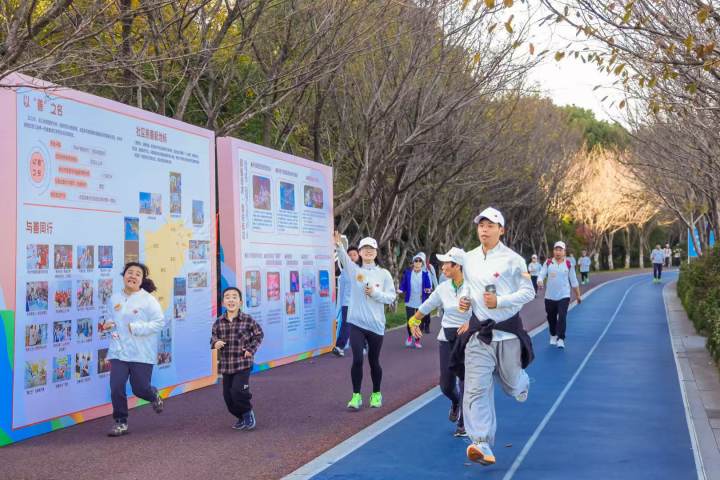 作为杭州民政系统举办的首届福彩公益跑,活动重点聚焦运动健身与民政元素的融合,在赛道沿途设置六大特色打卡点,以图文展板、摊位市集、打卡互动等形式生动展示我市民政重点领域的工作成果,从弱有众扶到社会组织管理,从老有康养到童心筑梦,从甜蜜经济到慈善事业,为现场跑友和周边市民打造了一场沉浸式的民政文化体验之旅。