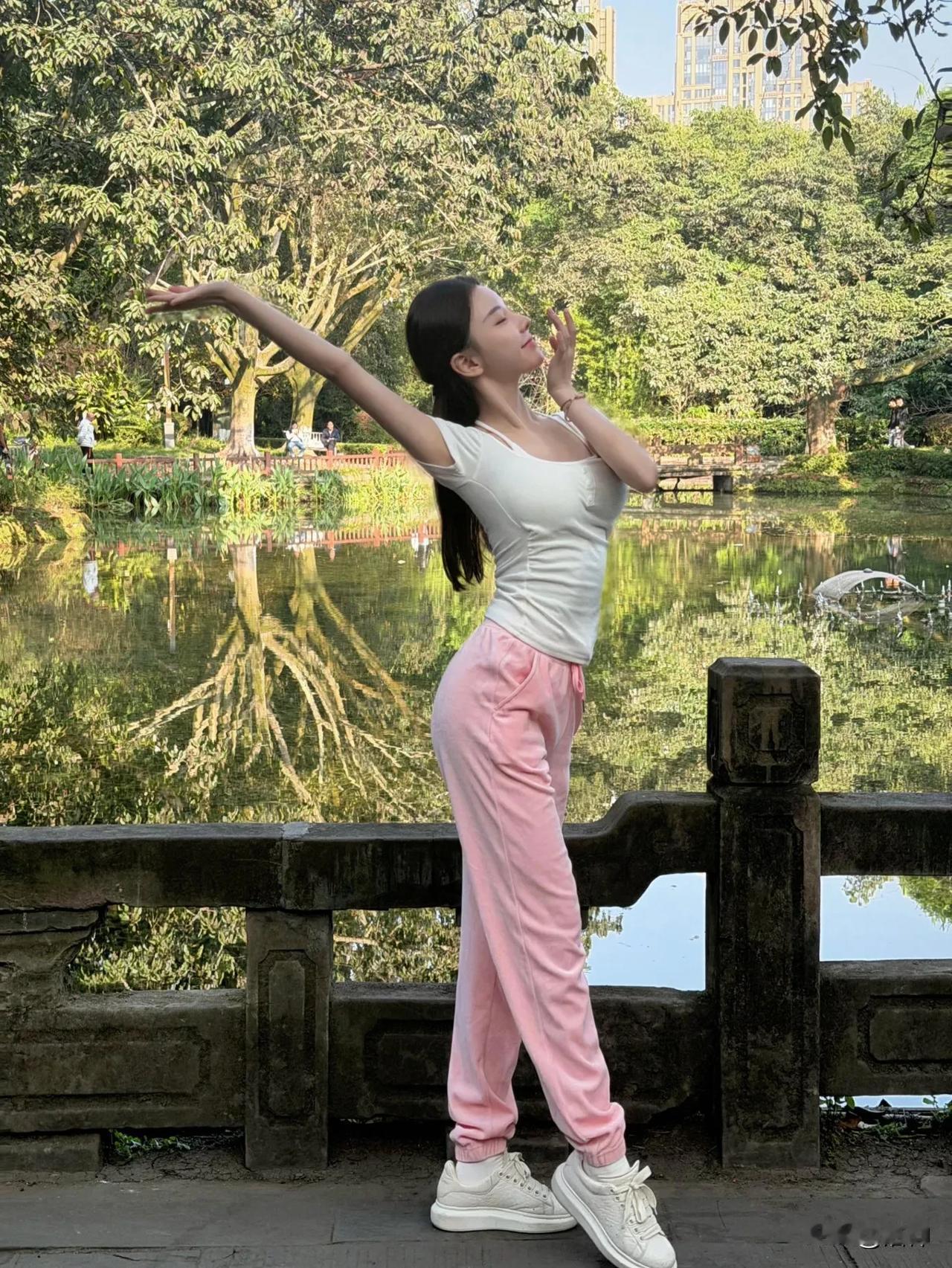 🙍秋日湖边的色彩对比强烈,使照片视觉冲击力更强。公园湖边美景#