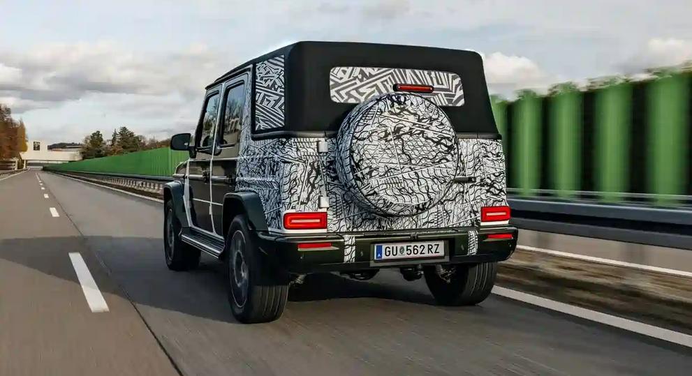 已阔别十多年 梅赛德斯-奔驰官方发布全新奔驰G级敞篷版谍照 日前,梅赛德斯-奔驰官方发布了一组全新奔驰G级敞篷版谍照。全新G级敞篷版将基于燃油车型打造,采用四门布局,预计将会在近期正式亮相,2026年正式上市销售。 考虑到其全球销售计划,G450d柴油版车型或许也会推出敞篷款。 值得一提的是,距离奔驰上一次推出常规版G级敞篷版车型,已经是十多年前的事了。 全新G级敞篷版整体造型与普通版车型差别不大,车辆C柱之后换为软顶敞篷材质,预计在侧面和车尾仍会提供车窗。新车尾部依旧会配备外挂备胎,U型尾灯位于两侧下方。 动力方面,参考目前在售奔驰G级,其搭载3.0升直列六缸双涡轮增压汽油发动机(G500),最大功率449马力,峰值扭矩560牛·米。同时,还将提供3.0升柴油发动机(G450d)可供选择。 点个关注吧!汽节车社,车圈热点资讯每日一扫清!【来自懂车帝车友圈】