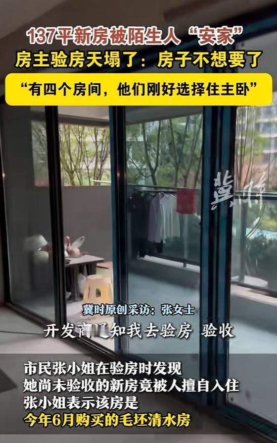 “这房子我不要了!”12月1日报道,四川绵阳一女子去新房验收时,打开一看,发现里面已经被陌生人入住,不仅通水通电,阳台上还有晾晒的衣物,女子去找中介理论,中介却表示这很正常,但女子表示,这样的房子自己完全不能接受![熊猫] 四川绵阳的张女士今年六月买了一套137平方米的毛坯房,十一月底接到通知去验房,她带着装修师傅一起去,想顺便量一下尺寸,好提前规划装修方案,到了现场,用钥匙打开门,两个人都愣住了。 这套房子已经有人住了,客厅里摆着冰箱和饮水机,地上铺着地垫,阳台上挂着衣服,卫生间里还加装了一个蹲便器,墙角堆着一些杂物,厨房水槽里有没洗的碗,整套房子通了水电,明显已经被使用了一段时间。 张女士第一反应是找中介问清楚,对方的回答让她更困惑了,中介说“这很正常”,但没解释到底是什么情况,也没说这些人是谁、为什么会住进来。 后来张女士又联系了开发商和物业,才逐渐拼凑出事情的大概,住在里面的人是施工队的工人,房子交付前他们一直在小区里干活,可能是为了省住宿费,就住进了还没交房的毛坯房里。 这种情况在新房交付过程中偶尔会发生,施工队、物业、保洁公司的工作人员,在楼盘正式交房之前都可能持有房屋钥匙,如果管理不严格,就可能出现钥匙外流、人员随意进出的问题。 张女士这套房的情况还算轻的,有些业主验房时发现,房子里不仅住过人,还被当成了临时仓库,堆满了建材和工具,墙面地面都有明显的磕碰痕迹,更麻烦的是私自改动房屋结构。 比如张女士家卫生间里那个蹲便器,加装的时候要凿地、接管道,如果位置不对或者施工不规范,后期可能会漏水。 遇到这种情况,第一步是把现场拍下来,用手机把每个房间都录一遍,重点拍清楚别人留下的物品、改动过的地方、墙面地面的损坏情况,这些都是后续协商或者维权的证据。 第二步是要求开发商给一个正式的书面说明,住的是什么人,什么时候住进来的,谁批准的,现在人在哪里,如果开发商推诿或者不配合,这本身就说明管理上存在问题。 第三步是明确诉求,业主可以要求开发商清退占用人员、恢复房屋原状、赔偿相关损失。 如果协商不成,可以向当地的住建部门投诉,住建部门负责监管房地产开发企业,接到投诉后一般会介入调查,投诉的时候记得带上购房合同、验房记录、现场照片视频这些材料。 张女士的事情后来怎么处理的,报道里没有详细说,但从她公开讲述这件事来看,应该还在和开发商协商过程中。 看了四川绵阳张女士的遭遇,评论区可以说是炸开了锅,好多网友都表示,这事儿搁谁身上都得气得不轻,简直太离谱了。 有网友调侃说,“这中介心可真大,他家房子也让人随便住吗?居然说正常,” 更多人在追问:住进去的人到底是谁?为啥能有钥匙? 一位网友分析:“毛坯房能通水通电,还有生活痕迹,这绝对不是临时住一两天,很可能是施工队的工人,或者某个有钥匙的内部人员图方便,把这当免费宿舍了。” 不少网友给张女士支招:“光生气没用,第一步就是拍照拍视频,把所有证据固定下来,冰箱、衣服、蹲便器一个都别漏,” “必须找开发商和物业要说法,这已经不是简单的纠纷了,这是非法侵占,让他们必须给出赔偿方案,比如免几年物业费。” 还有懂法的网友提醒,“私自改结构是大事,尤其是卫生间,万一漏水或者破坏承重就麻烦了,必须让他们恢复原样,并且出具安全证明。” 一位网友说:“买新房就像开启一段新生活,第一个踏进门的应该是自家人,现在莫名其妙被陌生人占了先,心里别提多膈应了,这种归属感和安全感被破坏了,不是简单道歉能弥补的。” 那么对于这件事情,您有什么想说的呢? 信息来源:冀时