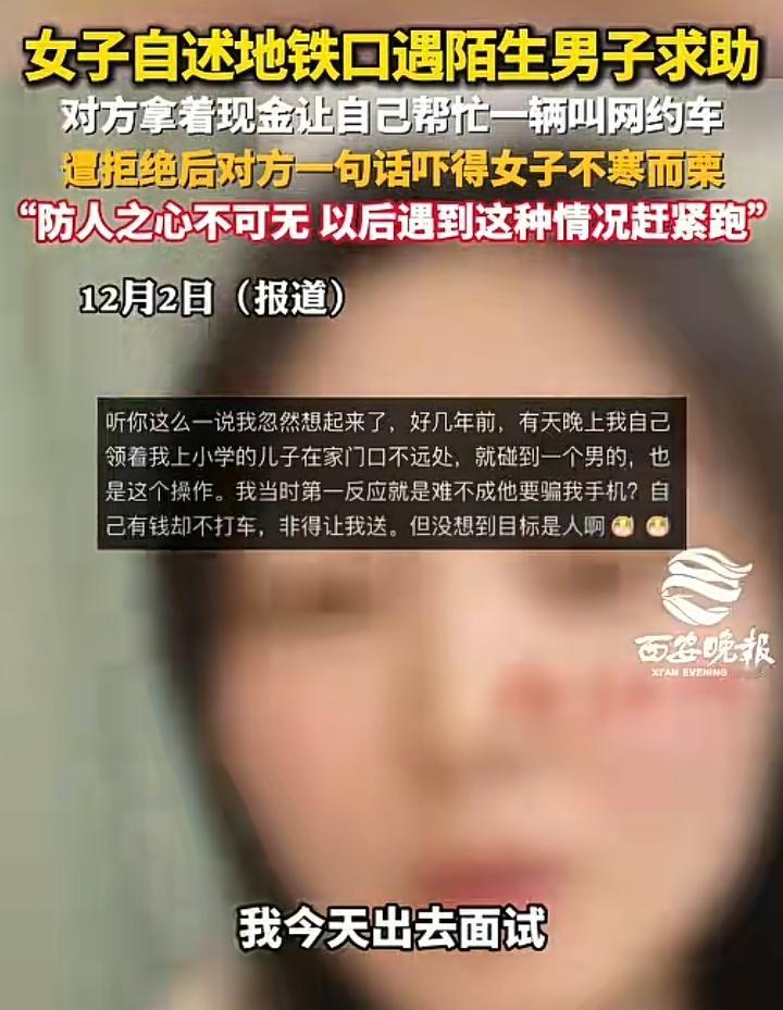 女子自述在找工作路过地铁口被一名男子求助,事后回忆心惊胆战一身冷汗,事情是这样的