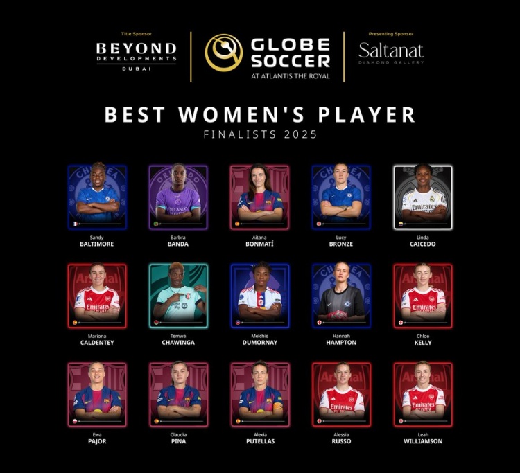 直播吧12月3日讯环球足球奖公布了2025年最佳女足球员15人最终候选名单,邦马蒂、普特拉斯、汉普顿、鲁索、凯莉在列。