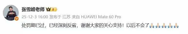 张雪峰回应被通报,但实际表现堪忧!12月3日,张雪峰被通报,9月份全网账号被禁言,是因为在直播中长时间污言秽语,人民日报转发了通报内容,并将张雪峰放进了标题。 可见此事影响很大,并不是单纯的禁言,而是要树立和引导网络风气,对此,张雪峰回应,称处罚期已过,已经深刻反省,以后不会了…… 事实上真的如此吗?在10月22日处罚期结束后,11月9日伍佰演唱会风波后,张雪峰在直播间内继续污言秽语(部分内容见截图),看过直播的人估计到现在还憋着一股气,相关视频网络上应该还在,这叫深刻反省吗? 互联网是有记忆的,有时候做什么比承诺什么更重要,希望张老师真的会改变,多传播知识,多分享升学经验!