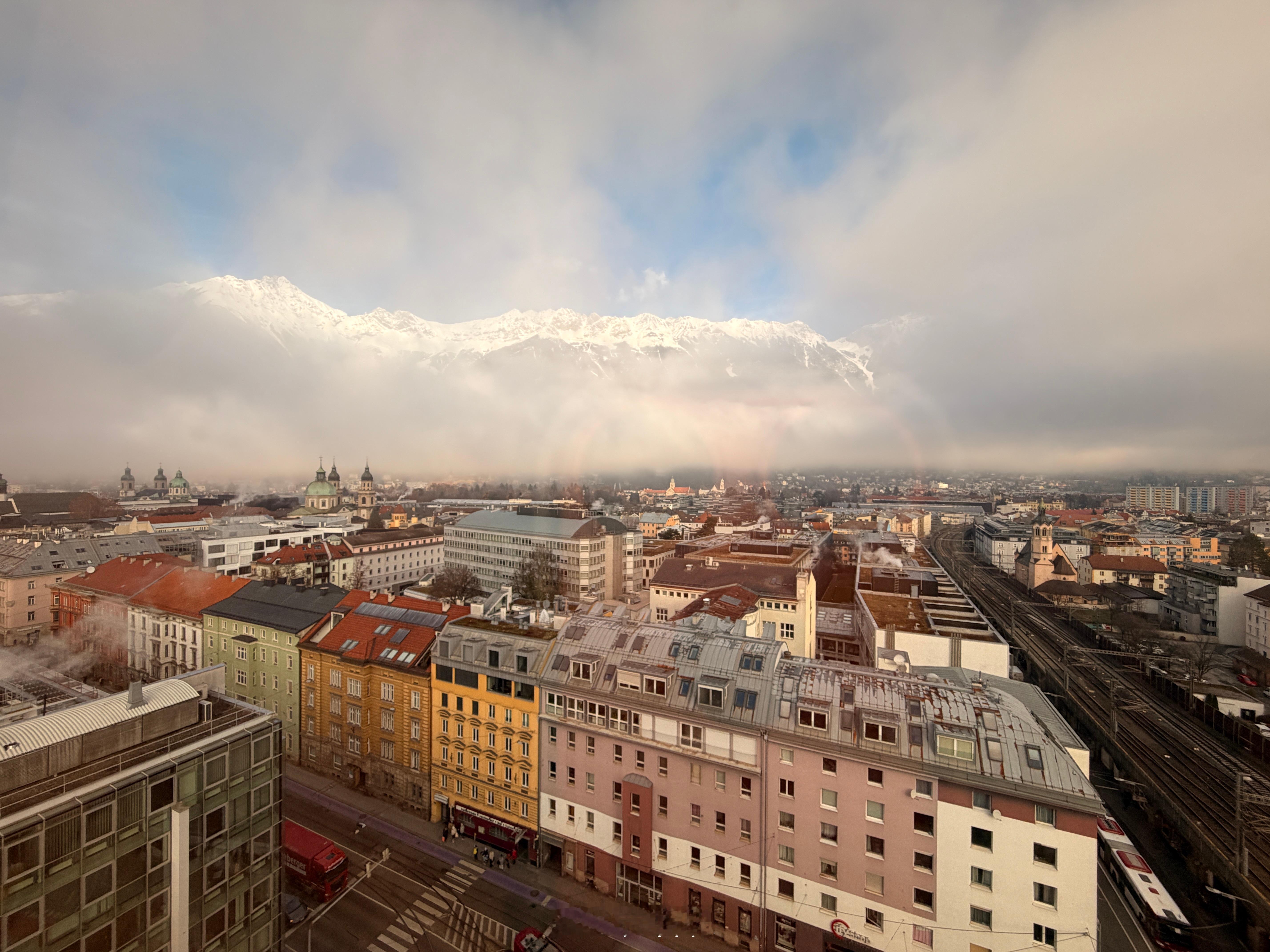 早上以为是雾蒙蒙的,雾一散,竟是天上的雪山,海市蜃楼一般的神奇……