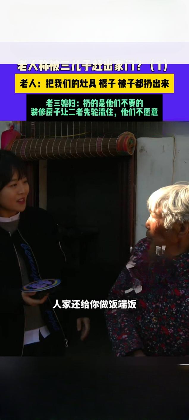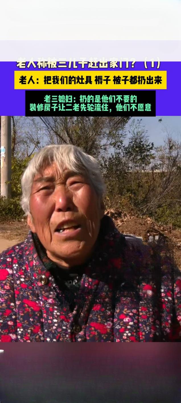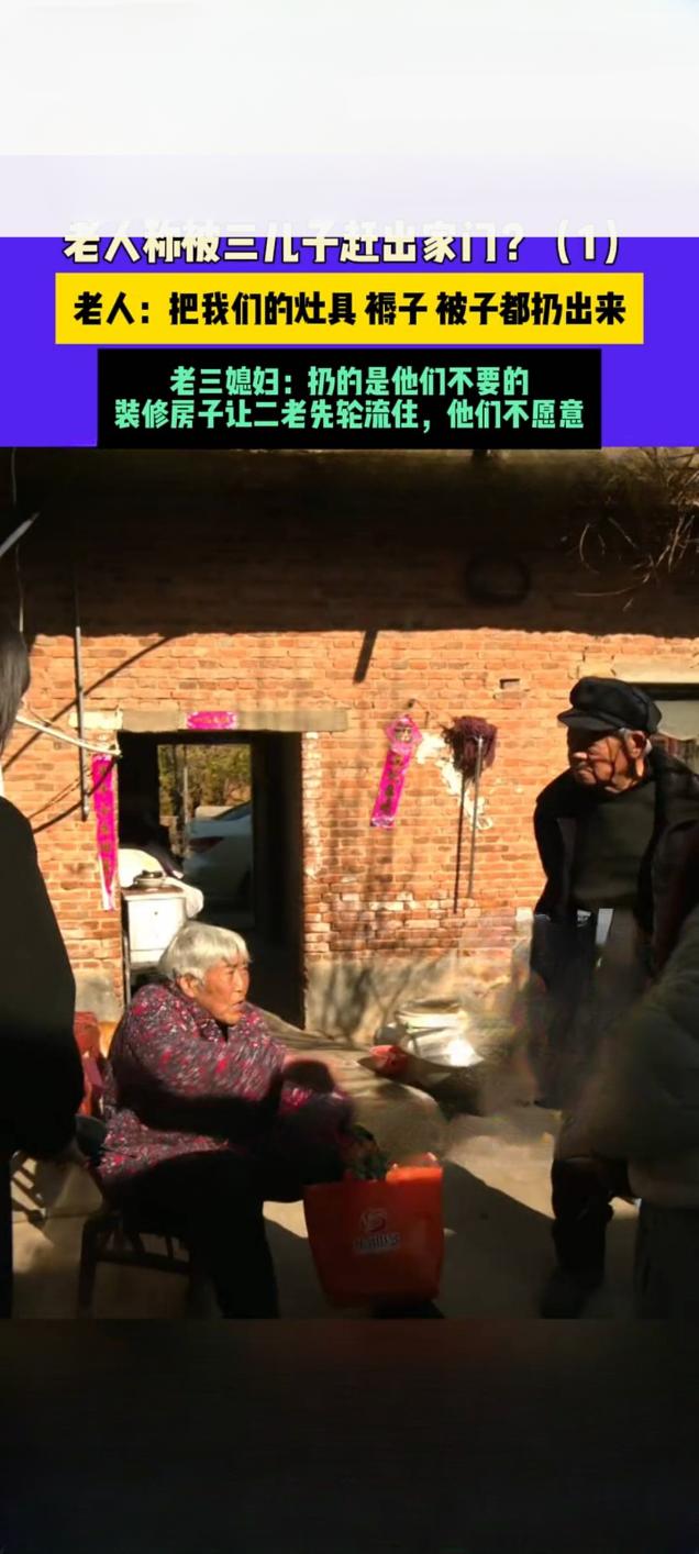 【七旬老人称被儿子赶出家门 儿媳回应:系装修临时安置分歧】 近日,河南洛阳一则七旬老人控诉被三儿子赶出家门的视频引发关注。画面中,老人指着散落院中的灶具、被褥哽咽道:“老三把我们的东西全扔出来了!”现场杂物凌乱,老人站在寒冬中无处可去的场景令人揪心。 面对质疑,三儿媳则给出不同说法。她表示扔出的都是老人早已不用的旧物,目前正在装修房屋,本计划让二老暂时轮流在三个儿子家居住,但老人坚决不同意此安排。这番说辞折射出双方对“临时安置”方案存在的严重分歧。 该段记录家庭矛盾的短视频在快手平台已获2.9万次播放,网友在痛心之余也展开热议。有网友认为无论如何不应让老人寒冬流落在外,也有人指出农村养老问题往往夹杂着复杂的家庭积怨。 目前当地村委会已介入调解。这起看似简单的家庭纠纷,实则暴露出农村养老保障、代际沟通等深层社会问题,如何让老年人老有所依仍需社会共同思考。 老有所依 老有所养