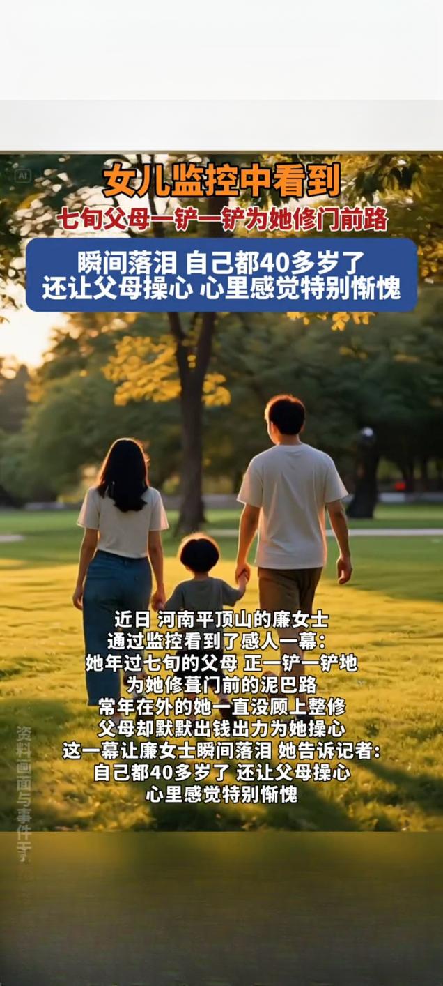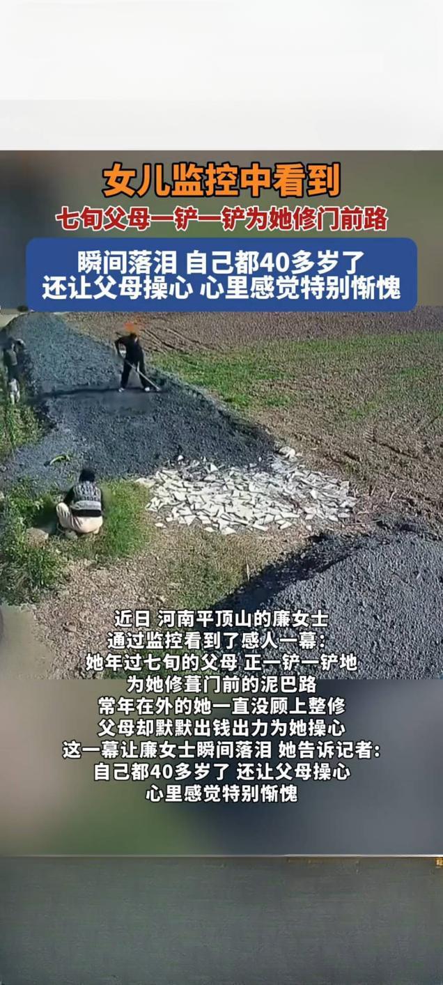 七旬父母一铲一铲为女修路 监控记录感人瞬间女儿泪目 近日,一段来自家庭监控的视频在网络引发热议。画面中,一对年过七旬的老人正手持铁铲,一铲一铲地为女儿家门前的道路进行修整。烈日下,他们佝偻的身影与坚实的动作形成鲜明对比,每一铲泥土都承载着沉甸甸的关爱。 据了解,女儿通过手机远程查看家中监控时,意外目睹了这令人动容的一幕。看到本应安享晚年的父母仍在为自己默默付出,用最原始的方式传递着最质朴的爱,她瞬间泪如雨下。这段仅178次播放的原始视频,却浓缩了天下父母无私付出的典型缩影。 “可怜天下父母心”,这句古老的谚语在此刻得到具象化呈现。没有华丽的言语,没有刻意的表达,两位老人用布满老茧的双手,在泥土飞扬中书写着最深沉的亲情。这条正在修缮的道路,不仅是通往家门的物理路径,更是连接两代人情感的温暖桥梁。 这平凡而真挚的瞬间,击中了无数网友内心最柔软的部分。它提醒我们,在这个快节奏的时代,父母的爱始终如磐石般坚定,默默守护着每个子女回家的路。修路 父母修路