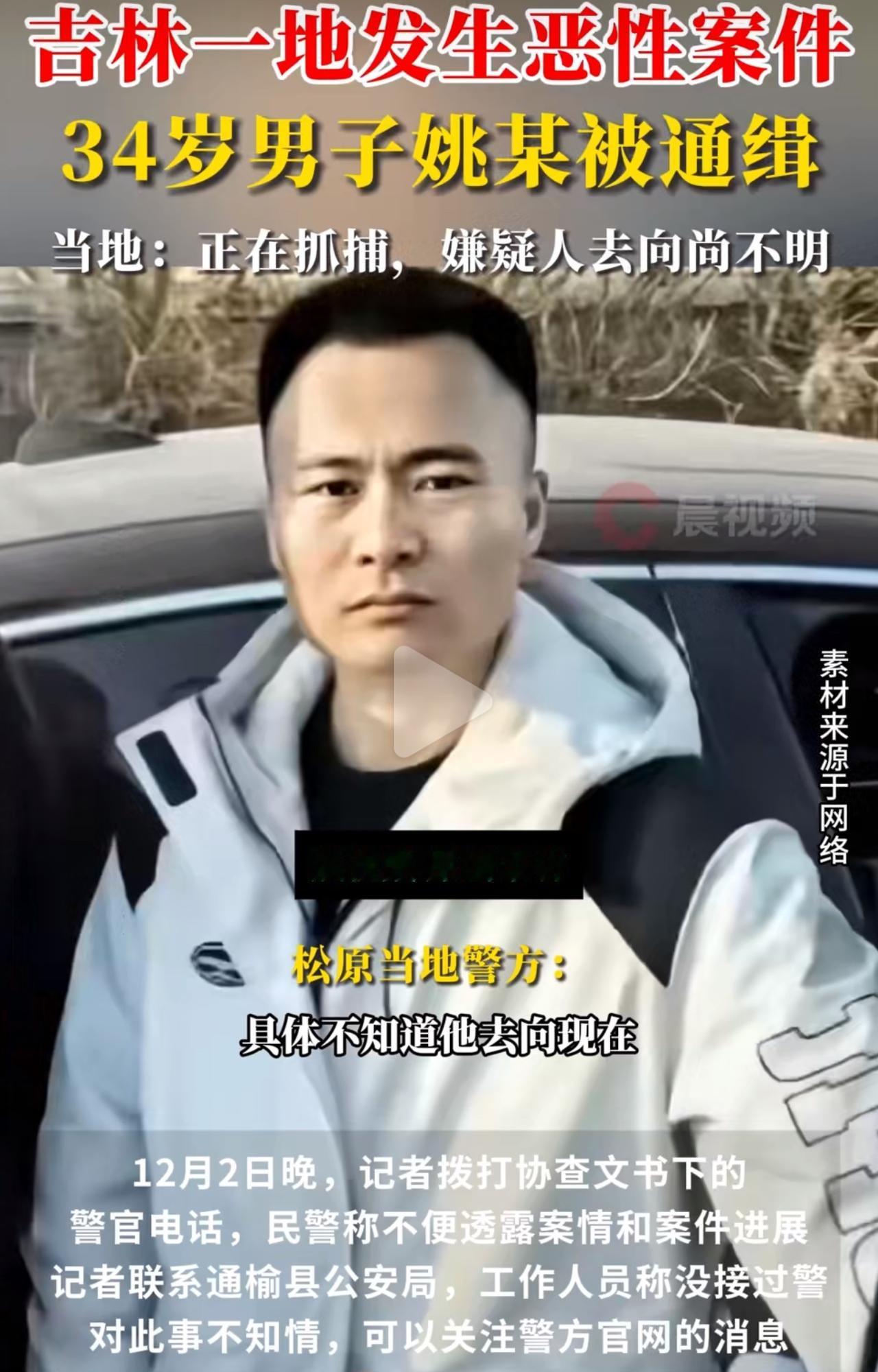 吉林长岭34岁的姚某,涉嫌恶性案件被通缉,零下20℃的大冷天,居然已经逃了超过24小时,警方撒网追了半天还没头绪,越想越让人心里发毛! 姚某34岁,中等个头,方圆脸,案发时穿一身黑,连鞋都是黑的,警方早就把他照片、协查电话发出来了,可直到现在还是没抓到人。更让人纳闷的是,协查文书上留的通榆警方电话,人家直接说没接警、不知情,可松原当地警方又实打实确认有这个案子,还在全力追捕,两边说法对不上,真让人摸不着头脑,越看越好奇这里面到底咋回事。 这大冬天的,吉林夜间零下20℃,冻得人出门都得裹三层,伸个手都费劲。姚某肯定躲起来避寒了,要么藏在居民区,要么钻废弃房子里,一身黑衣服裹得严严实实,天黑了根本认不出来,给警方追捕添了老大麻烦。一开始大家还都盼着赶紧把人抓到,可看着追捕陷入僵局,心里就越来越慌,总怕他丧心病狂,再做出啥危险的事来。 网上现在乱得很,有人瞎传他杀了3个人,还有人说他扬言要再作案才自首,这些全是谣言,网警都已经介入查了。更过分的是,还有人拿这种恶性案件玩梗,真的太没底线了,一点不尊重受害者。其实警方不公开案情,也是怕干扰侦查,咱们也得理解,不能瞎起哄。 真心提醒吉林的家人们,尤其是独居的、住得偏的,赶紧把门窗加固好,遇到可疑的人别硬刚,先躲远点,赶紧打110报警。也别瞎传谣言,咱们就安安静静待着等警方通报,盼着早点把嫌疑人抓到,大家才能安安心心过日子。吉林34岁男子涉恶性案件被通缉 恶性案件 吉林省长岭县