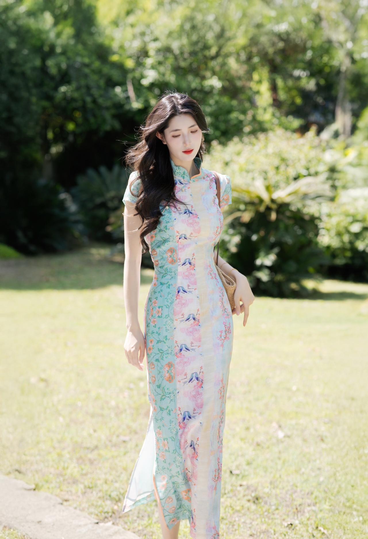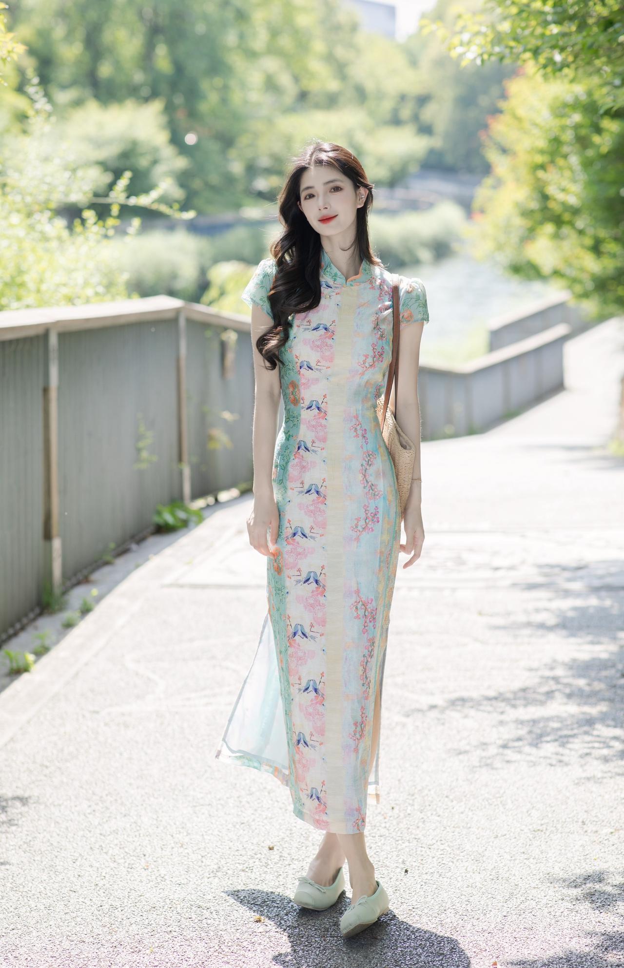阳光正好~美女不燥穿搭旗袍裙紫色韵味十足女性旗袍如何搭配好看?