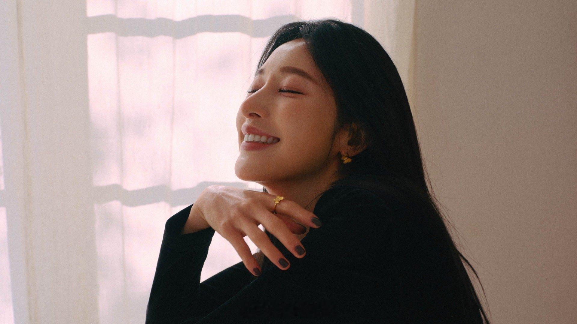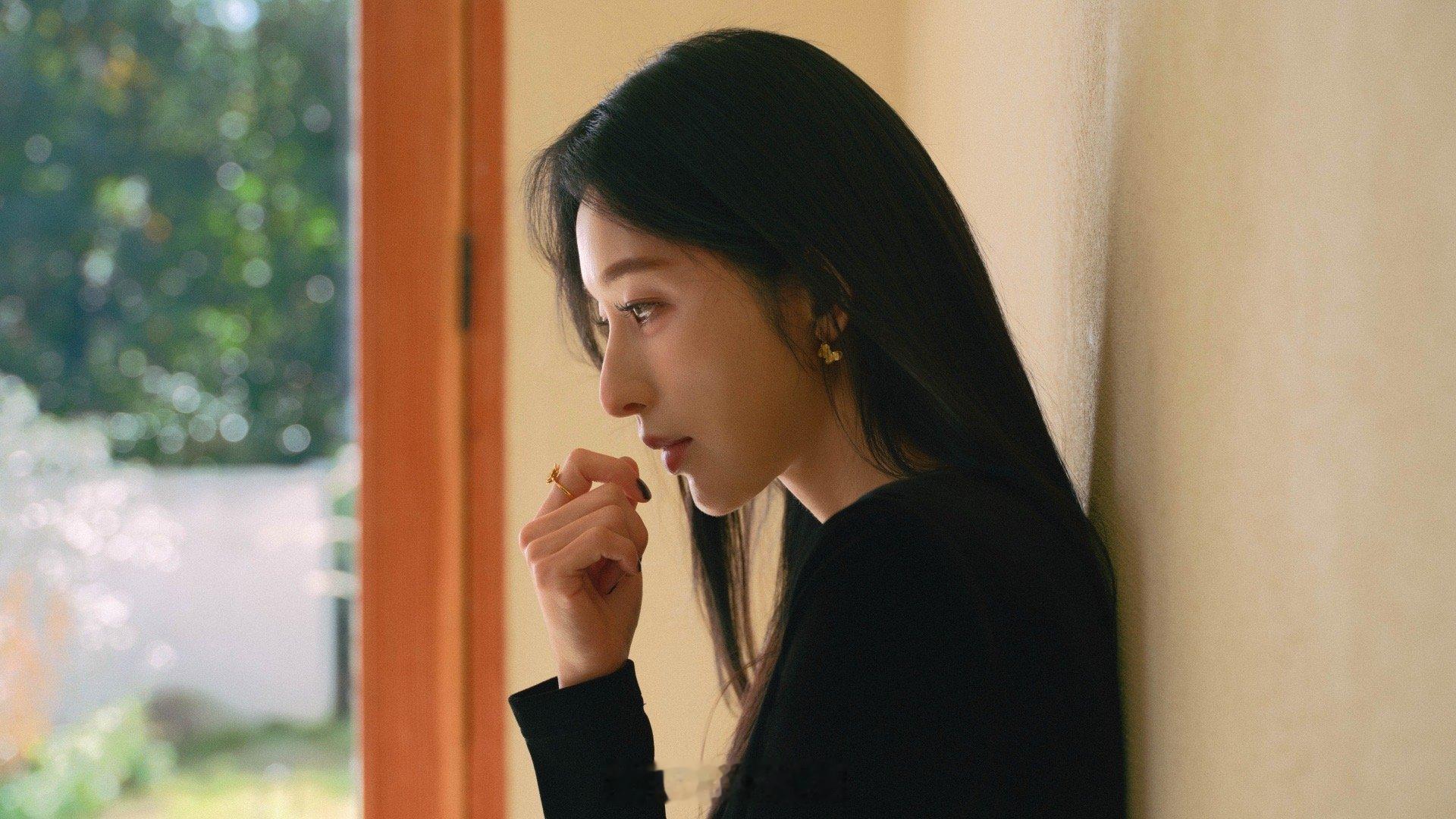 秋日暖阳下,少女轻抚落叶,甜美如画。