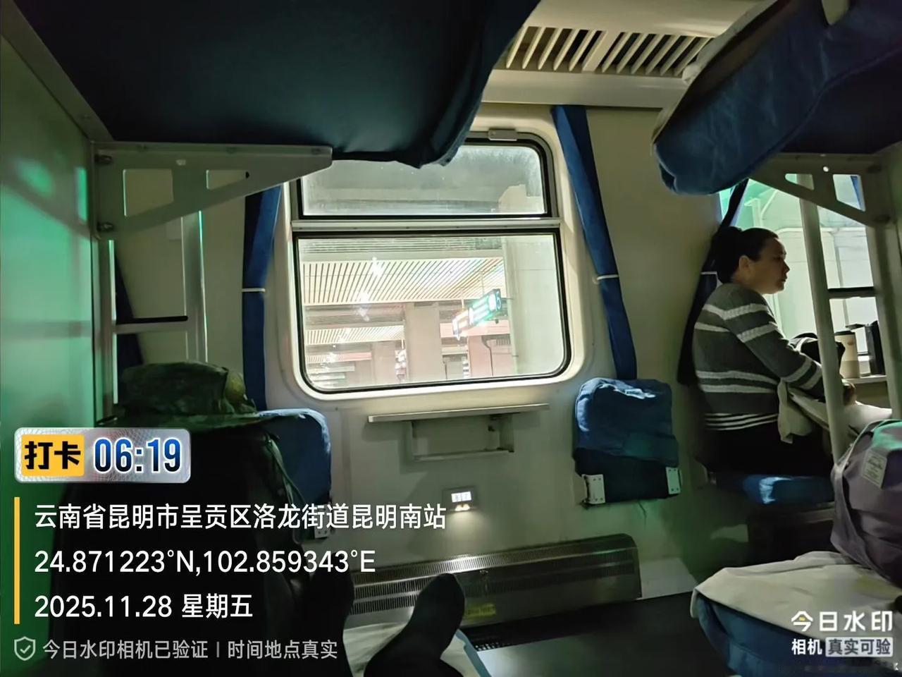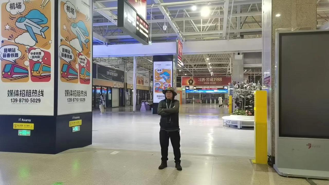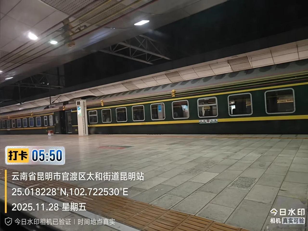 我是前几天,也就是上个月28号凌晨4点15分,从华住会旗下一个叫怡莱酒店,打出租车去的昆明火车站,1.8公里。 昆明官渡区晚上22点到凌晨五点,起价费夜补12块钱。 早上六点钟的火车,我们为什么走的那么早? 担心凌晨打不到车,酒店前台服务员说够呛。 不行好徒步去昆明火车站。 1.8公里,拉着两个大拉杆箱,背一个双肩包,还有两大包吃的。负荷上百斤,走到火车站得40分钟。 有钱人带银行卡,穷人穷折腾。 我还有一个设想,就是万一打不到车,骑共享电动车,把行李包裹往返几个来回,倒到火车站,火车站前有摆摊卖馄饨包子的,就说一会儿,上她家吃早餐,帮着照看一下东西。 没想到能打到出租车,徒步,骑共享电动车的方案都夭折了,多少有点怅然若失。 前一天晚上从塘子巷地铁口出来,我一下子感觉自己穿少了,昆明的夜晚真冷啊。 凌晨4点多到了昆明火车站,差点把我冻抽了。 昆明火车站 ,就一个钢结构棚顶,四周没有墙,四面透风。 昆明火车站,夏天是最热的火车站,好像没有空调:想不到,冬天会是最冷的火车站。 昆明火车站也应该是全国最节约电力能源的省会城市火车站。 凌晨四点多了,侯车的都是等着乘坐早上六点发往西双版纳去的绿皮火车,后来我知道,这趟绿皮火车,全程卧铺。 我在昆明火车站绕大圈,慢跑了一个多小时。为了驱寒。 我当兵入伍的时候是冬天,新兵连走队列,一会儿就冻的不行了,班长就让我们在操场跑几圈,再接着拔正步。 我是在西安机场转机停留三个多小时,我去了室外吸烟区,感觉西安还行,不冷。西安不冷,昆明就更不能冷了。 事实把我的推断,彻底否定了。昆明咋这么冷。 老了,经不起折腾了,上了卧铺车,就开始淌清鼻涕,感冒就像是搁裤兜里揣着,说来就来。 双色球大乐透不容易中奖,感冒说中就中。 上了卧铺,心想,昆明冷,我几个小时就到西双版纳了。 怎么也想不到,今年西双版纳景洪也冷。晚上必须盖厚棉被子。 今天下午开始,西双版纳暖和了。